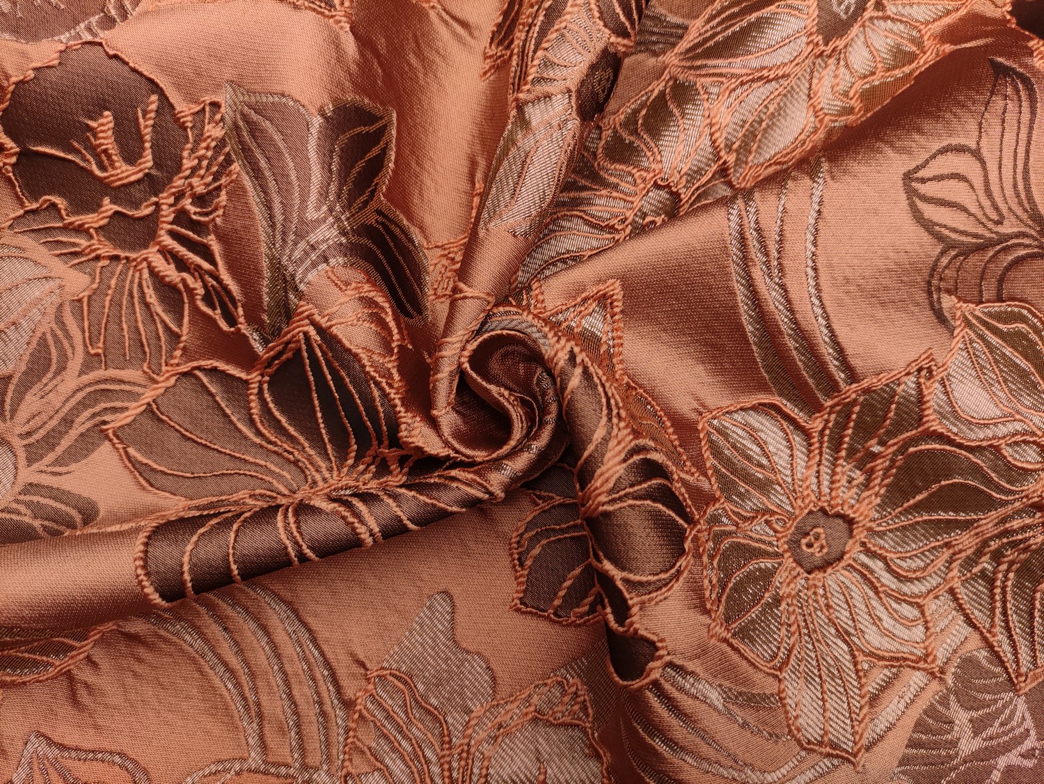Tessuto Broccato in seta ideale per realizzare capi eleganti e strutturati, si presta alla creazione di abiti ampi, giacche e gonne.