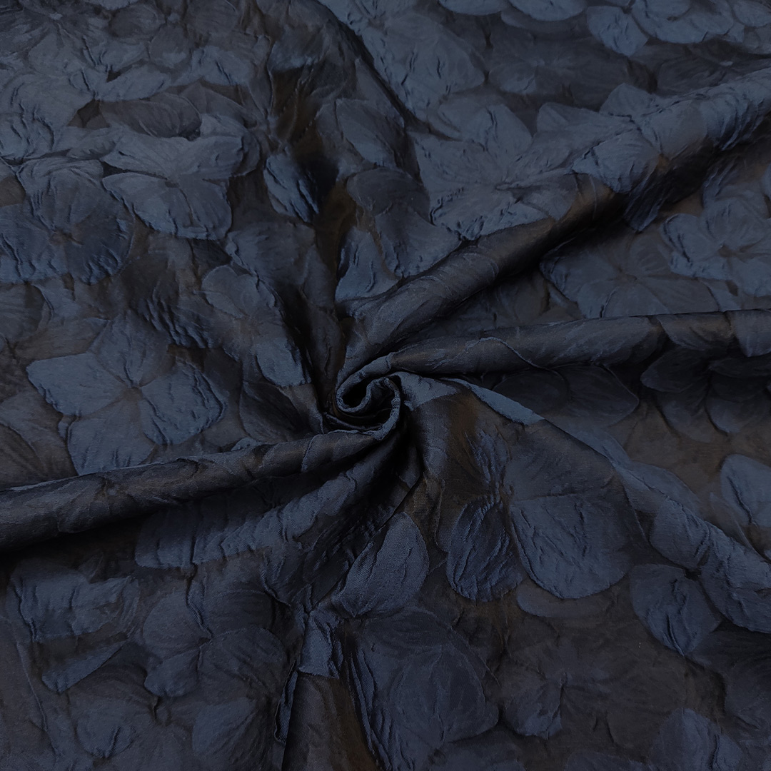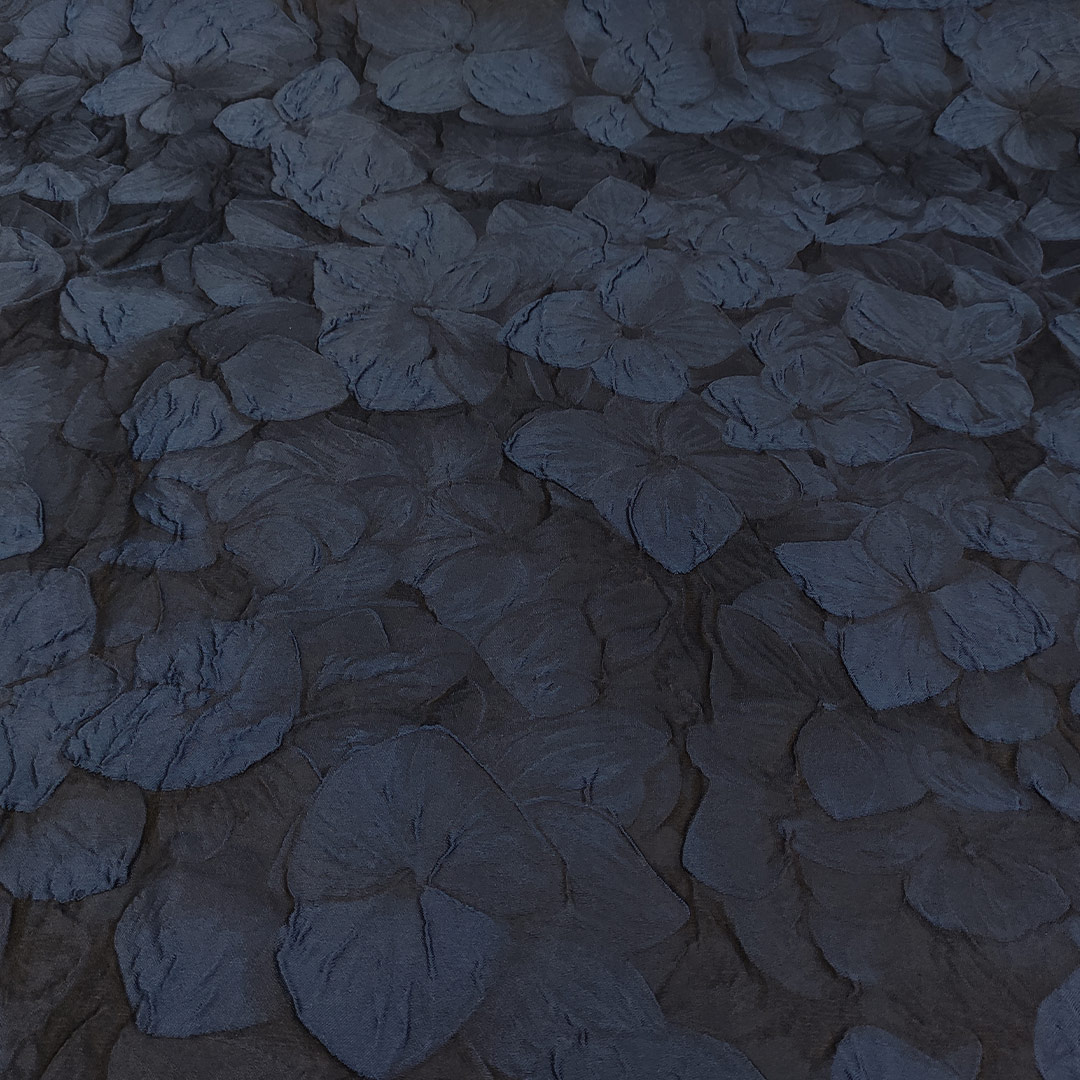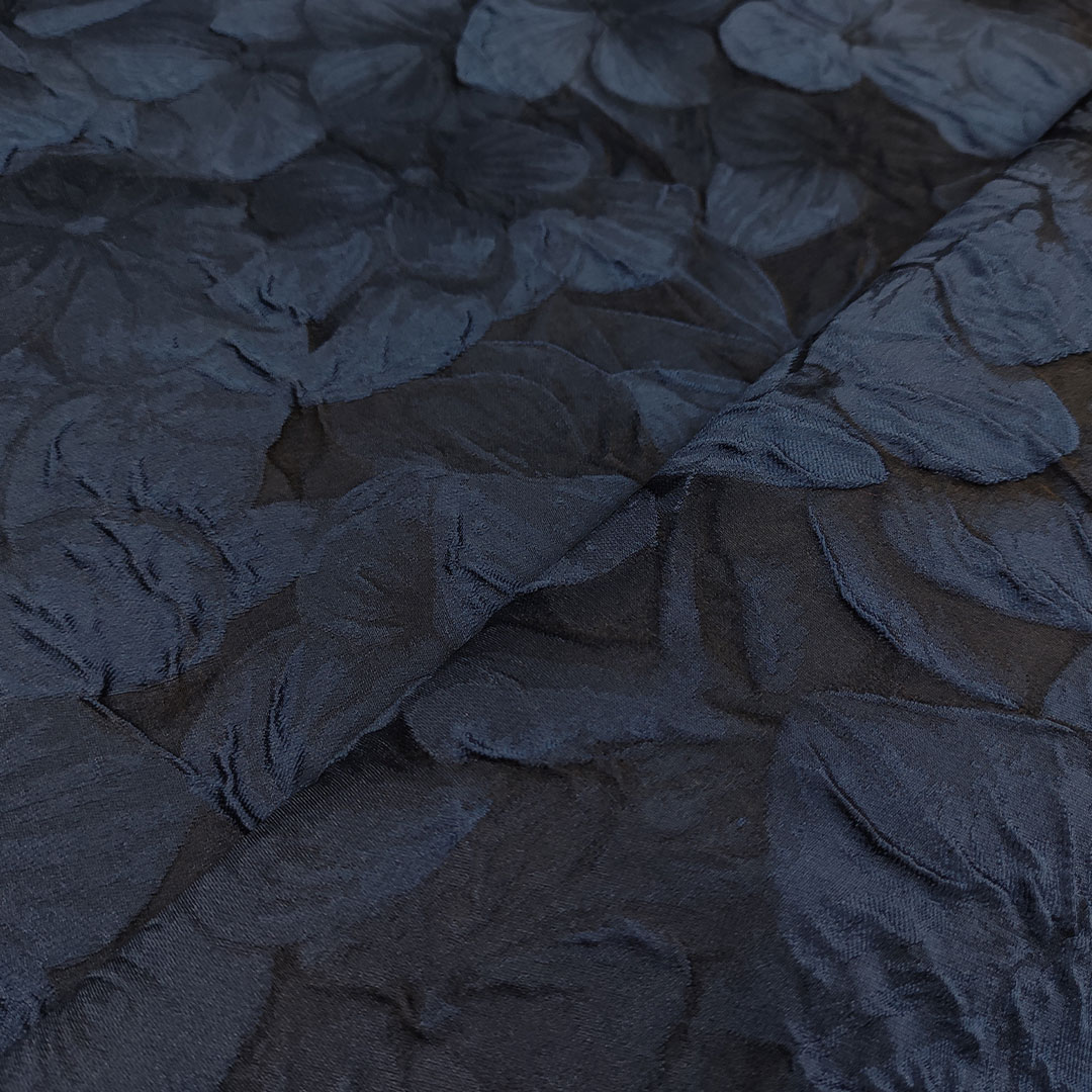 Tessuto Broccato in seta motivo floreale sfumato tono su tono blu navy