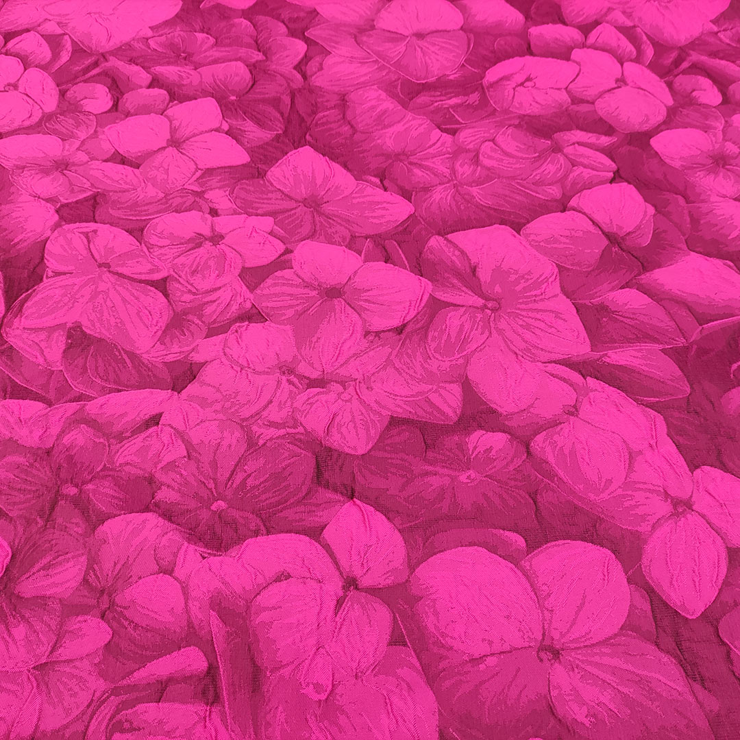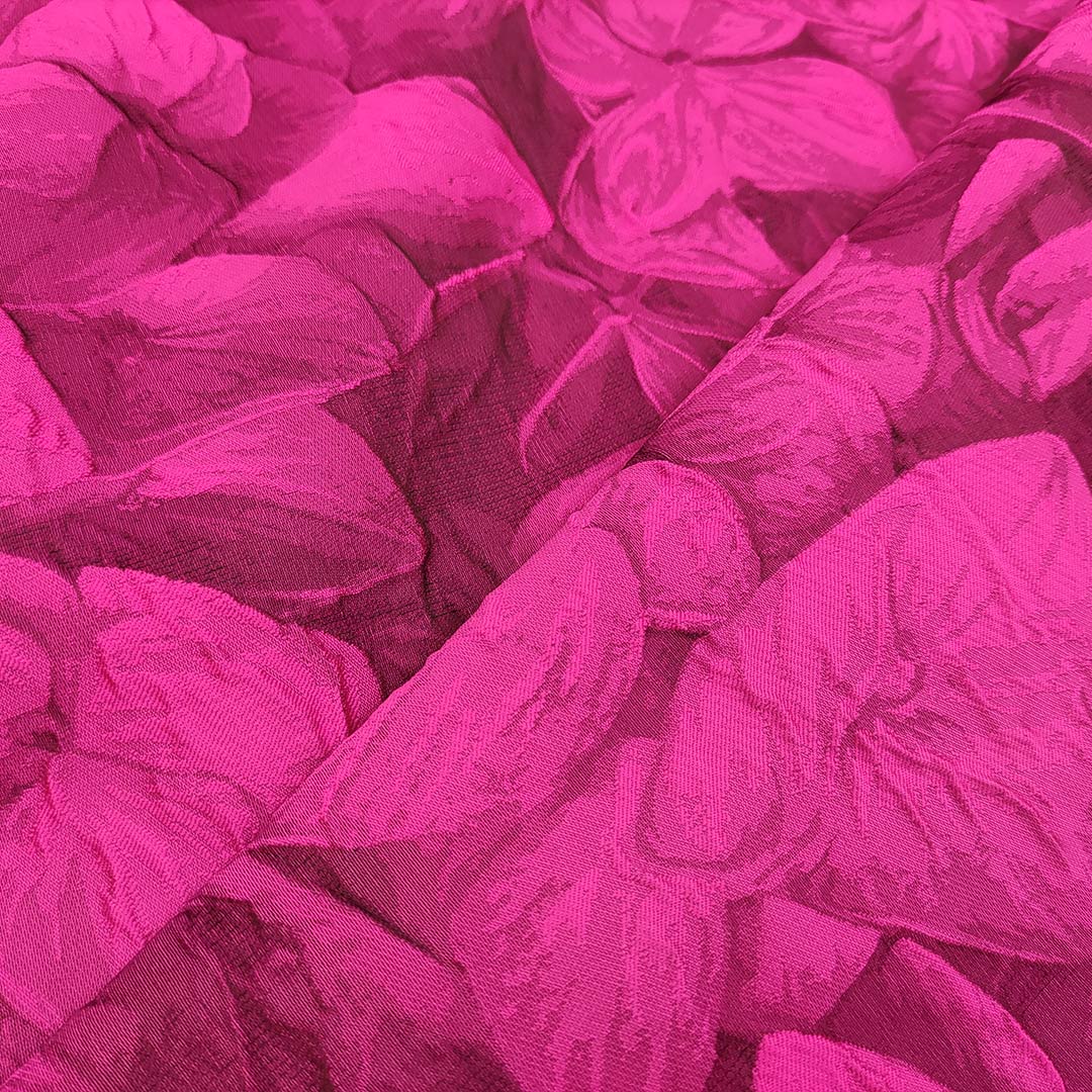 Tessuto Broccato in seta motivo floreale sfumato tono su tono fucsia