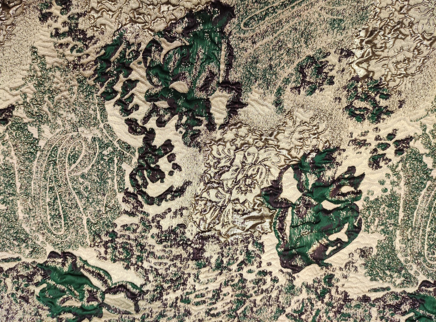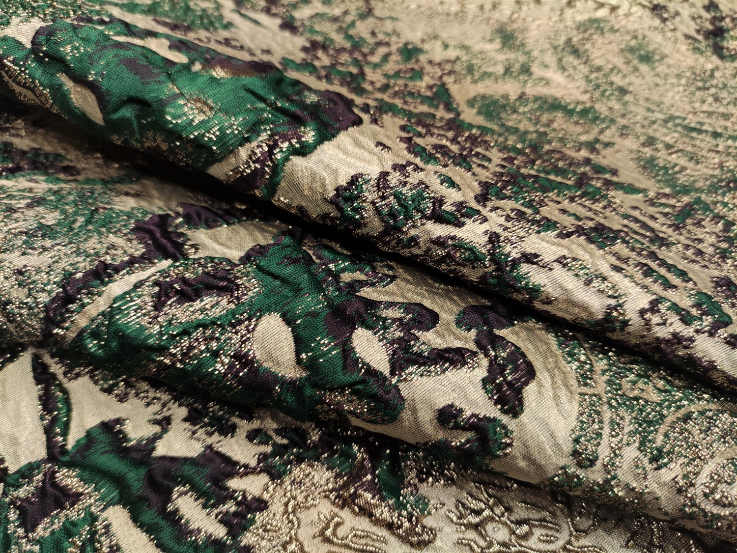 Tessuto Broccato in seta motivo floreale verde bottiglia – oro – viola