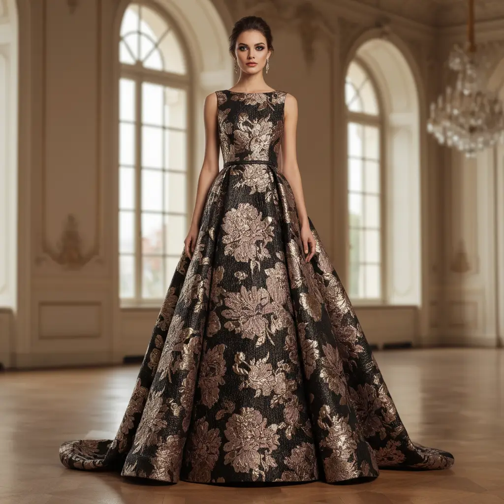 Tessuto Broccato in seta ideale per realizzare capi eleganti e strutturati, si presta alla creazione di abiti ampi, giacche e gonne.