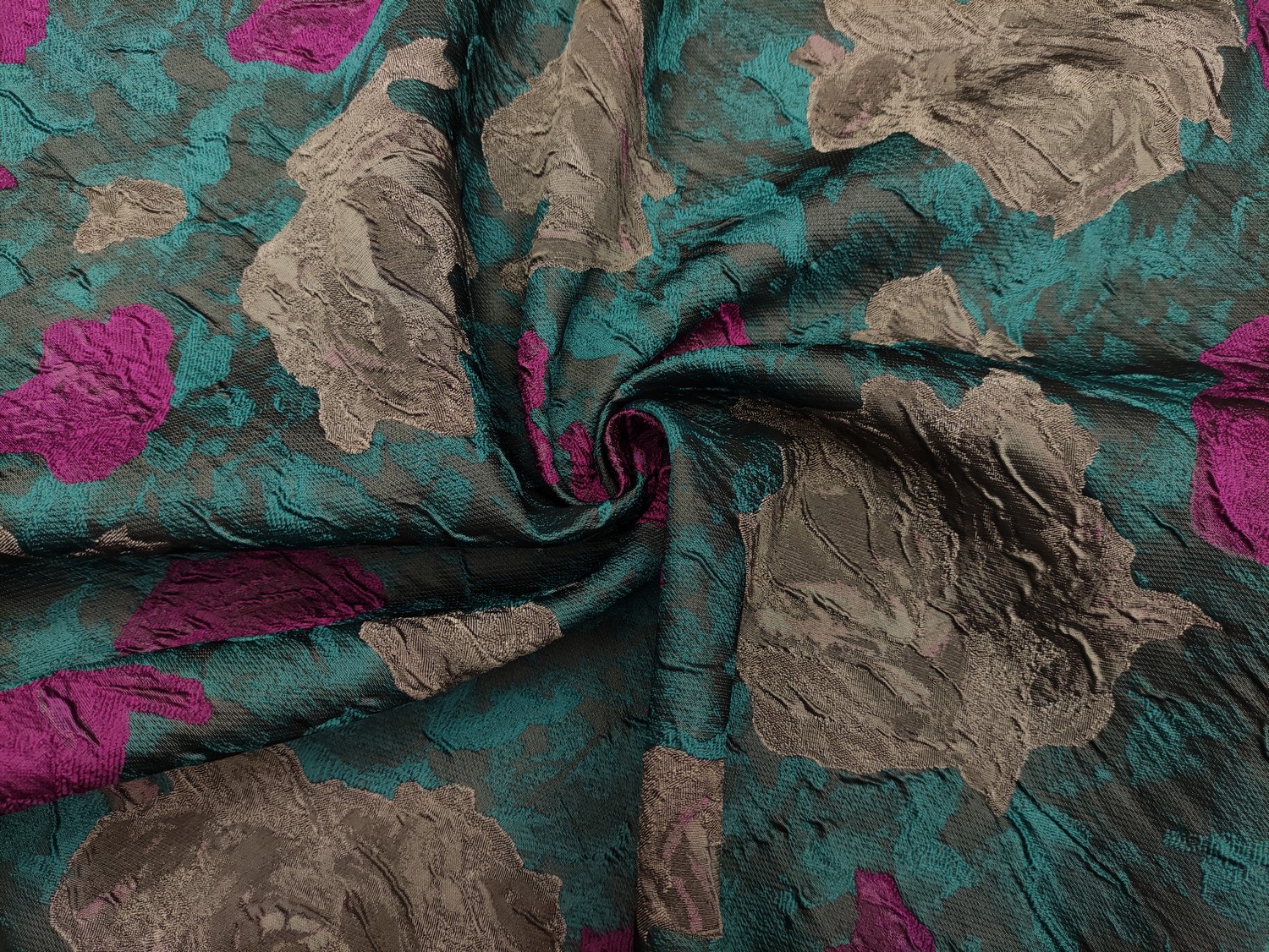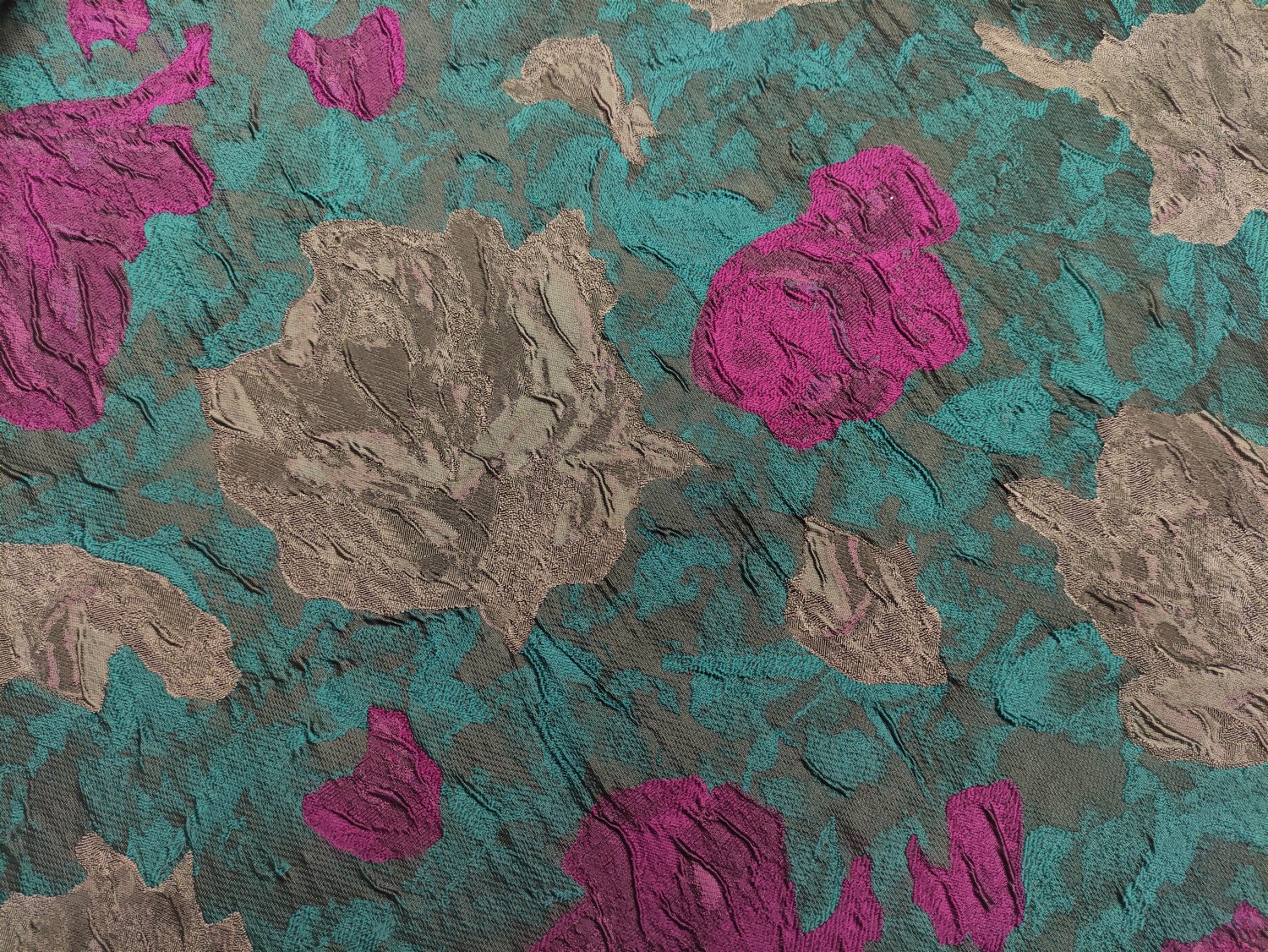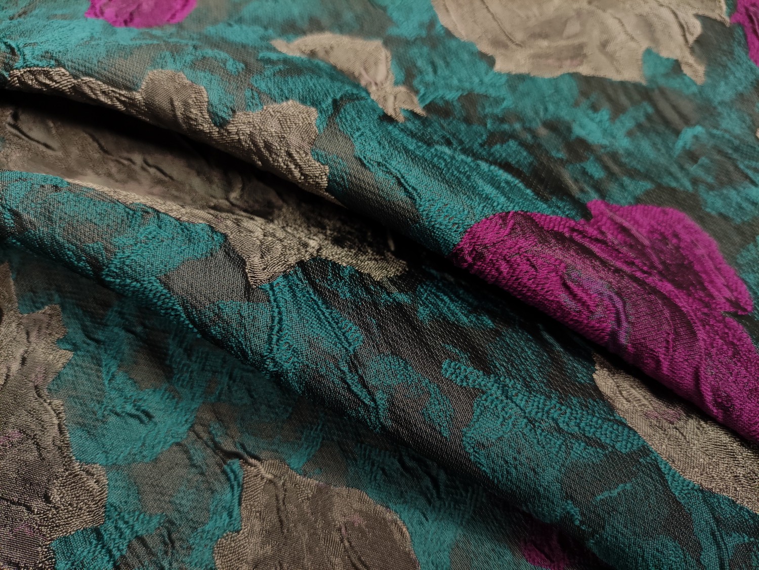 Tessuto Broccato in seta motivo floreale verde ottanio – magenta