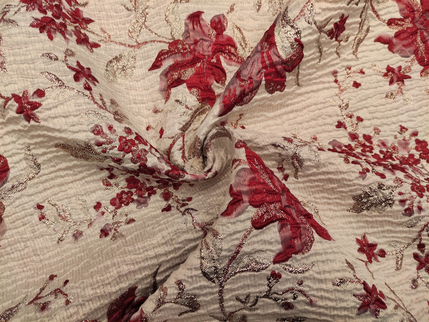 Tessuto Broccato in seta ideale per realizzare capi eleganti e strutturati, si presta alla creazione di abiti ampi, giacche e gonne.