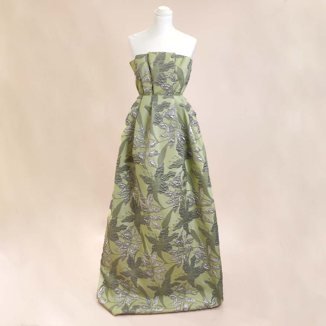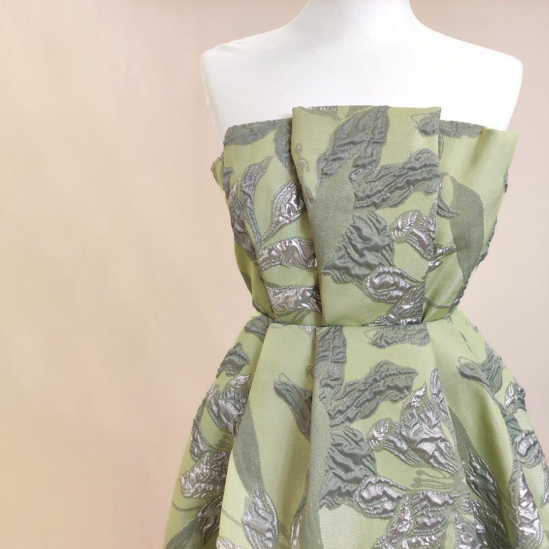 Tessuto Broccato in seta ideale per realizzare capi eleganti e strutturati, si presta alla creazione di abiti ampi, giacche e gonne.