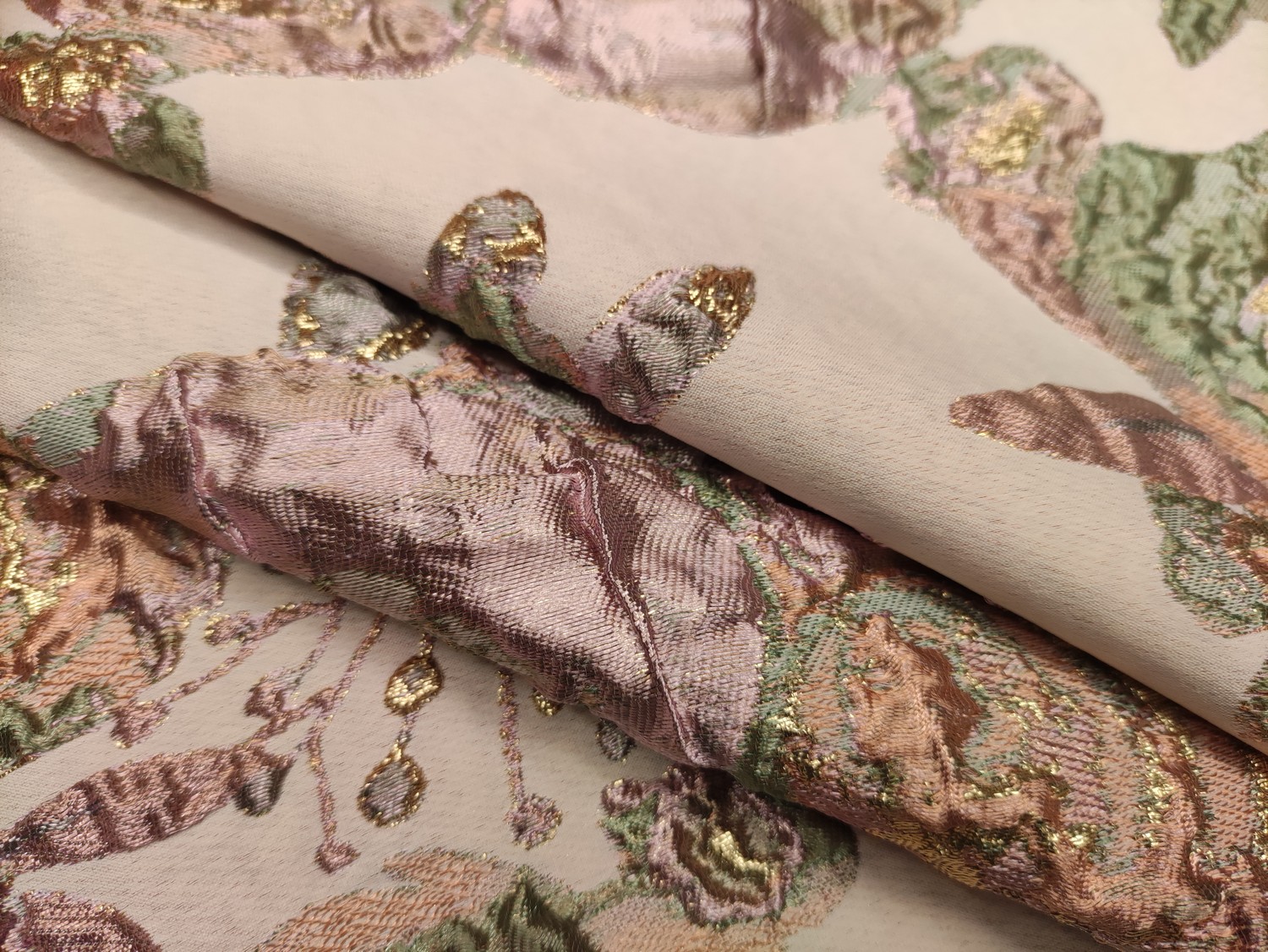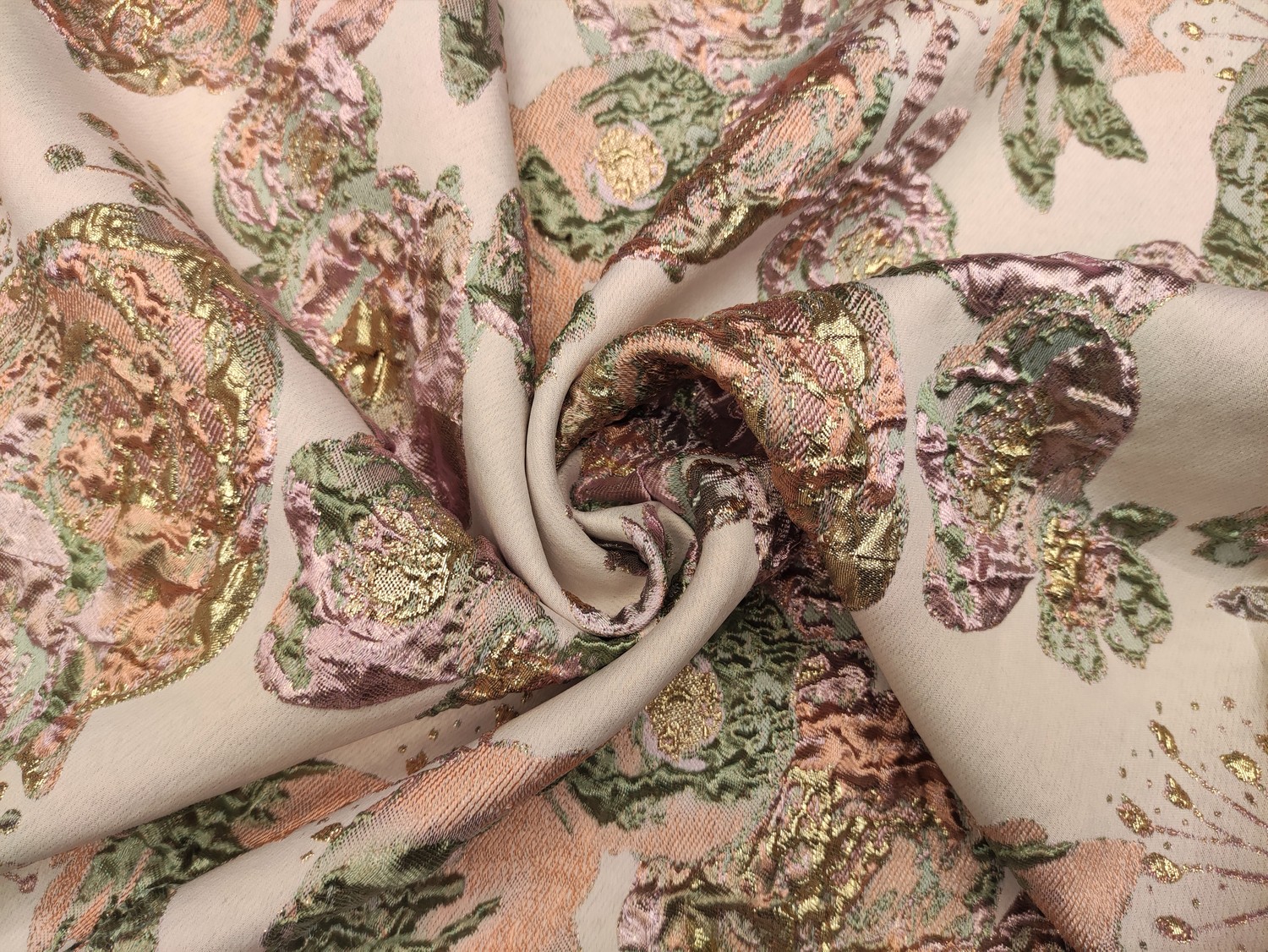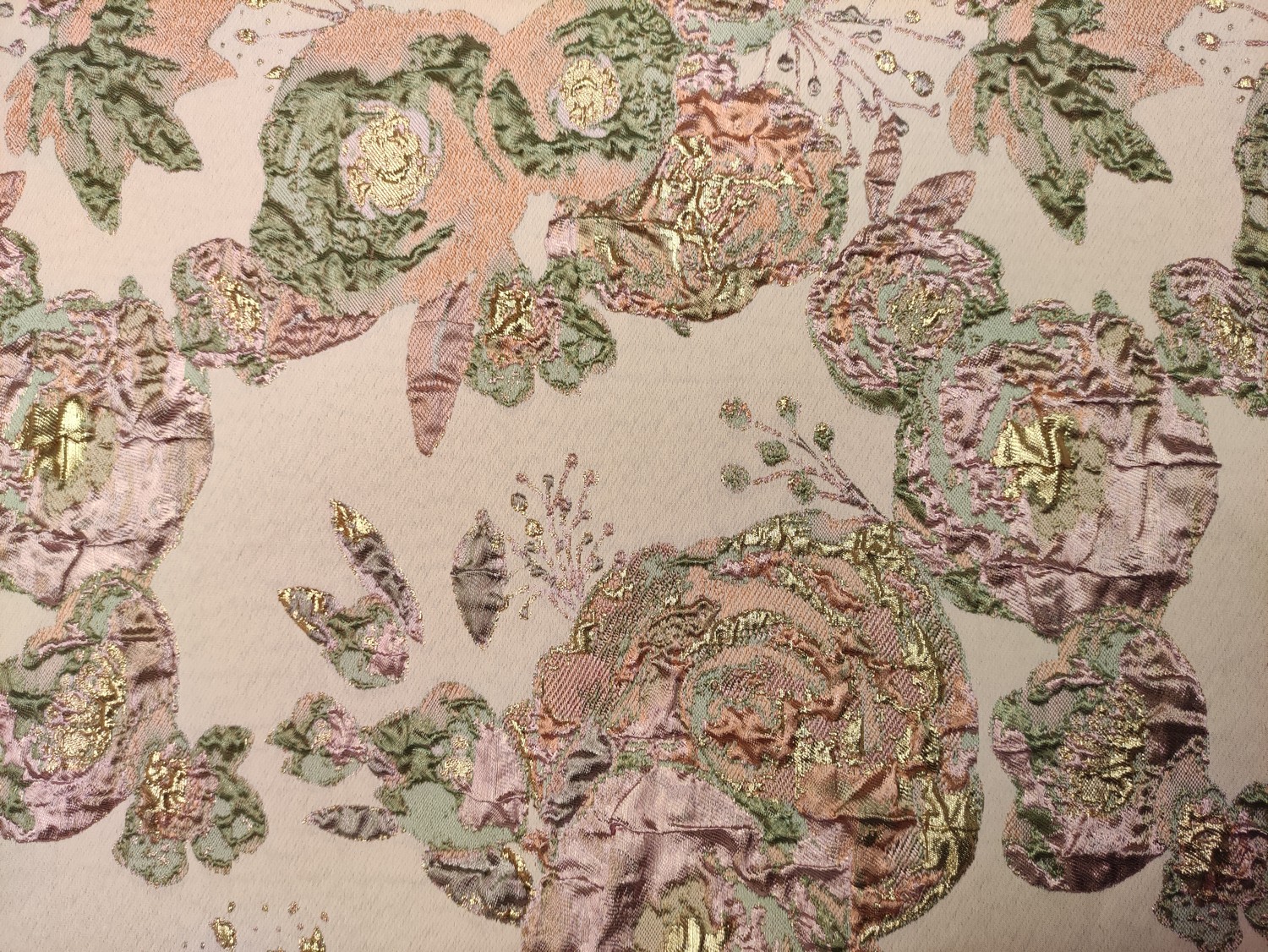 Tessuto Broccato in seta ideale per realizzare capi eleganti e strutturati, si presta alla creazione di abiti ampi, giacche e gonne.