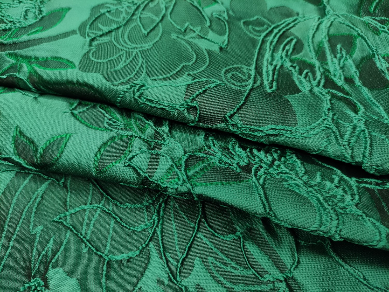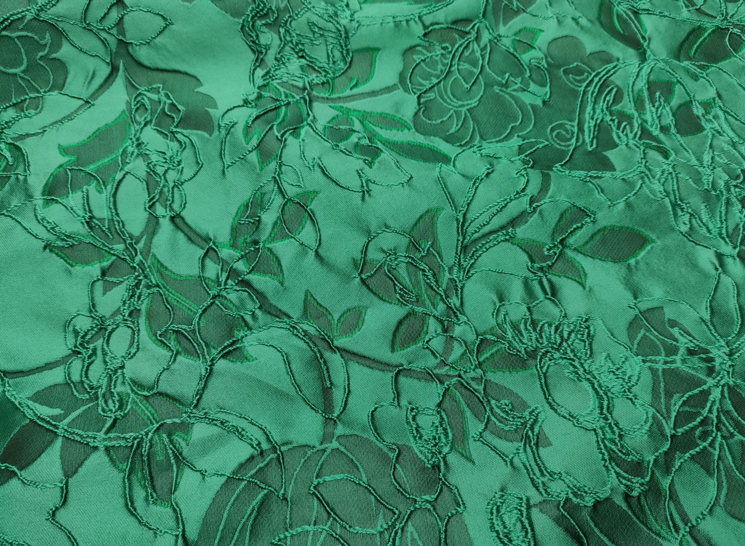 Tessuto Broccato in seta motivo floreale verde smeraldo