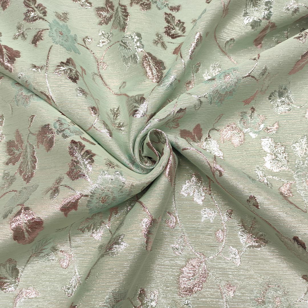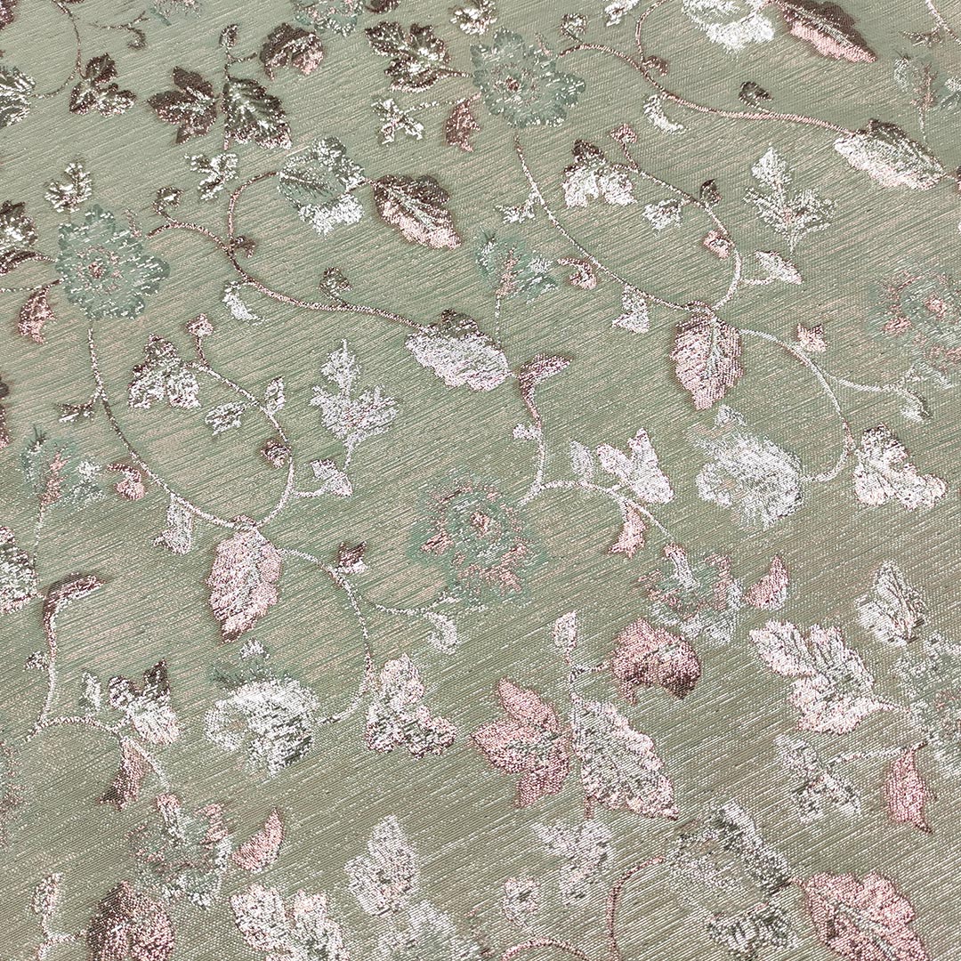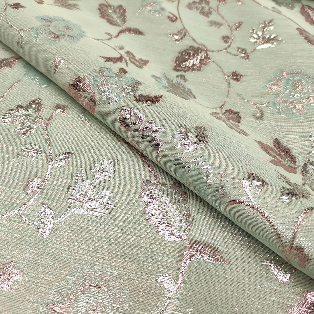 Tessuto Broccato lurex motivo floreale acquamarina – rosa antico