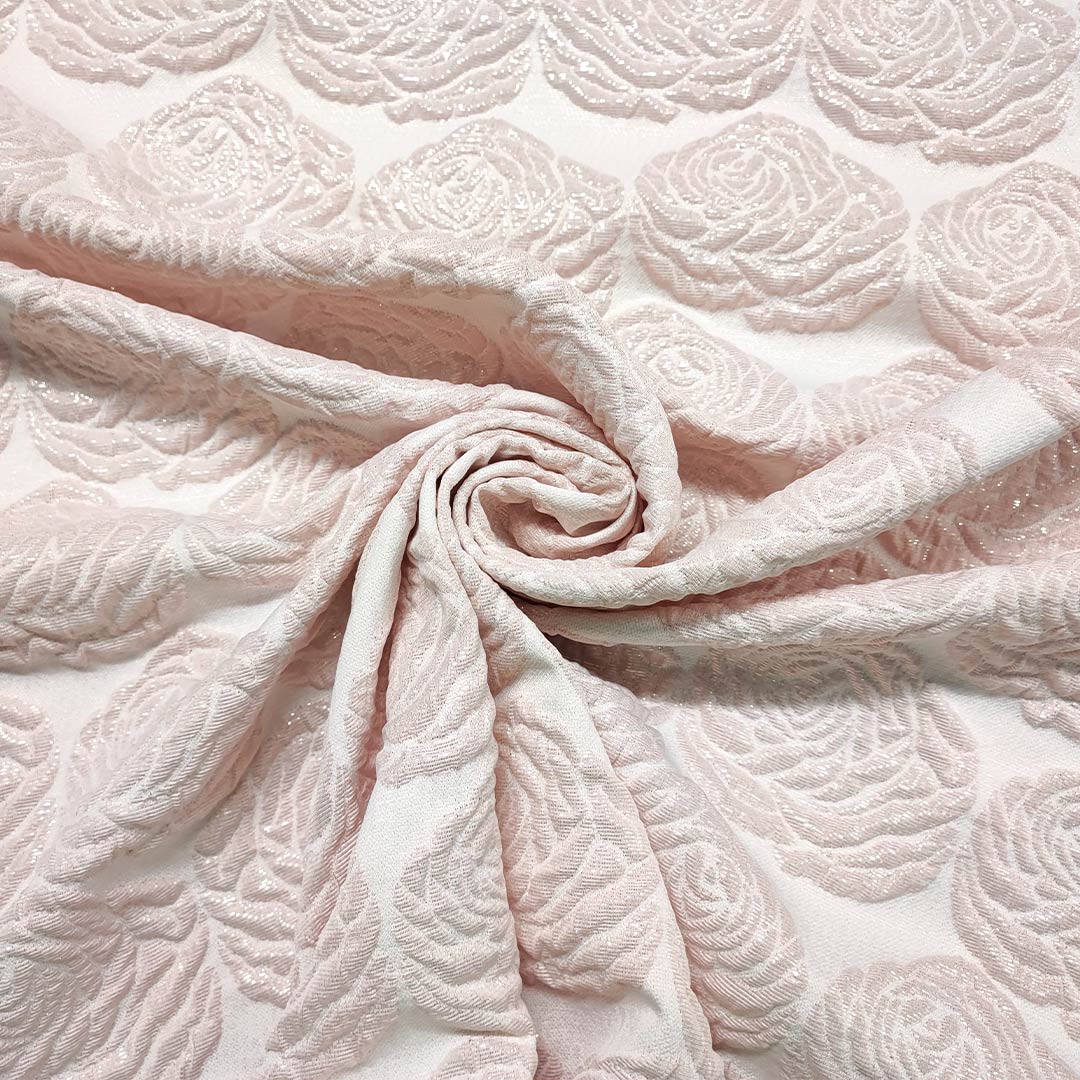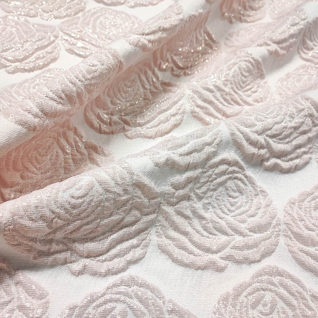 Tessuto Broccato motivo floreale rosa cipria – oro – panna