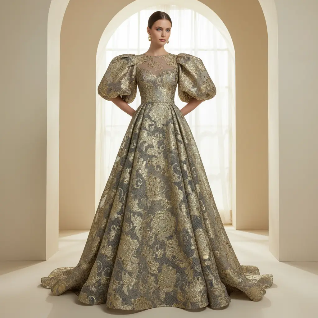 Tessuto Organza jacquard ideale per realizzare capi eleganti e strutturati, si presta alla creazione di abiti ampi, giacche e gonne.