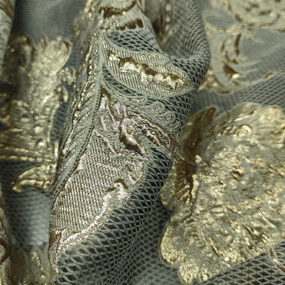 Tessuto Organza jacquard motivo floreale cashmere tortora – oro