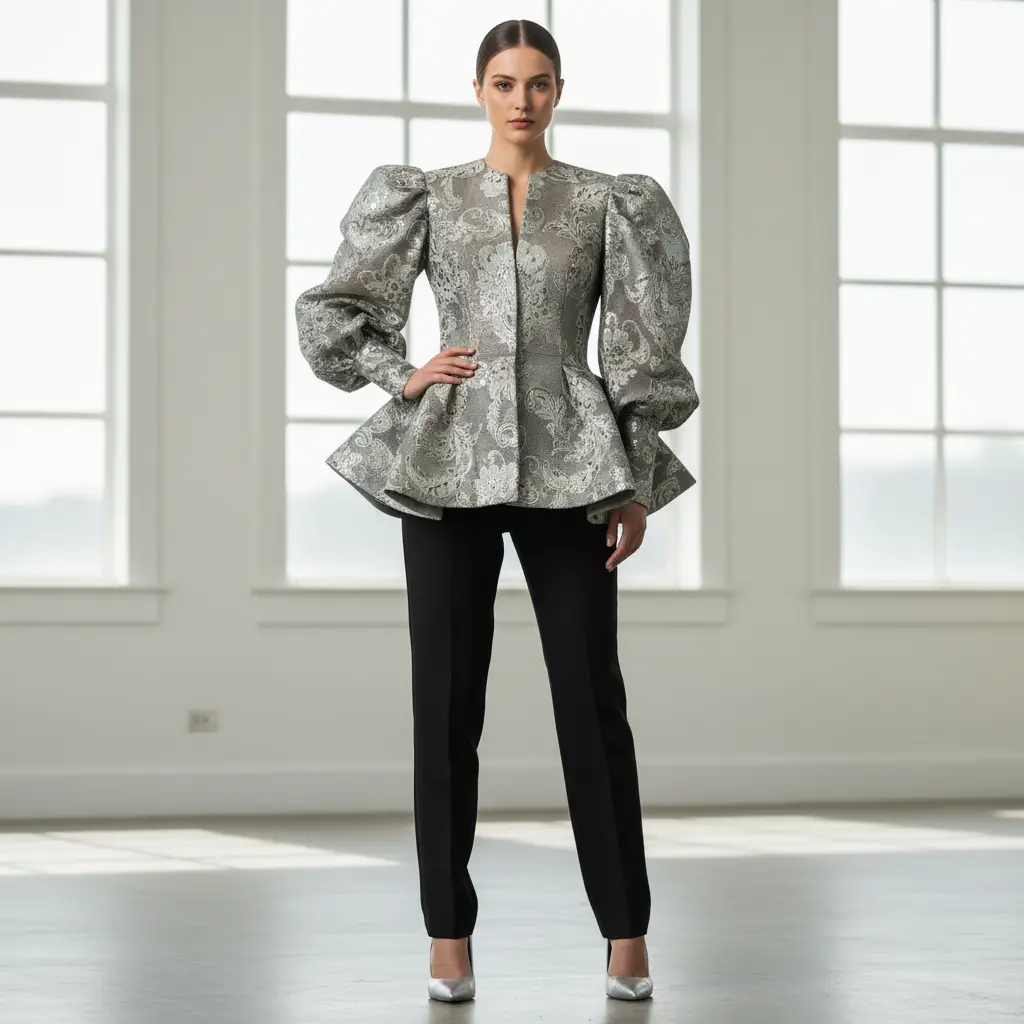 Tessuto Organza jacquard ideale per realizzare capi eleganti e strutturati, si presta alla creazione di abiti ampi, giacche e gonne.