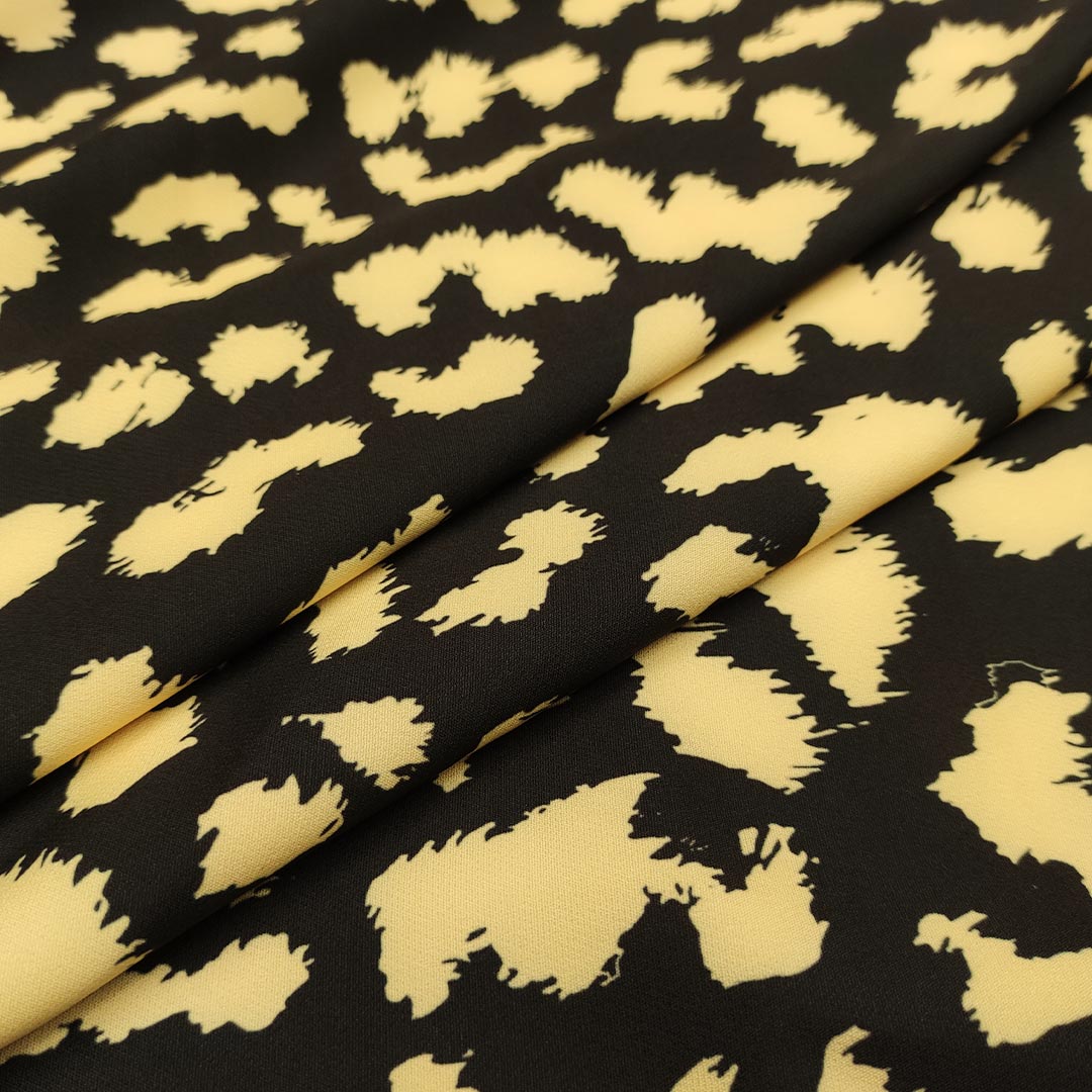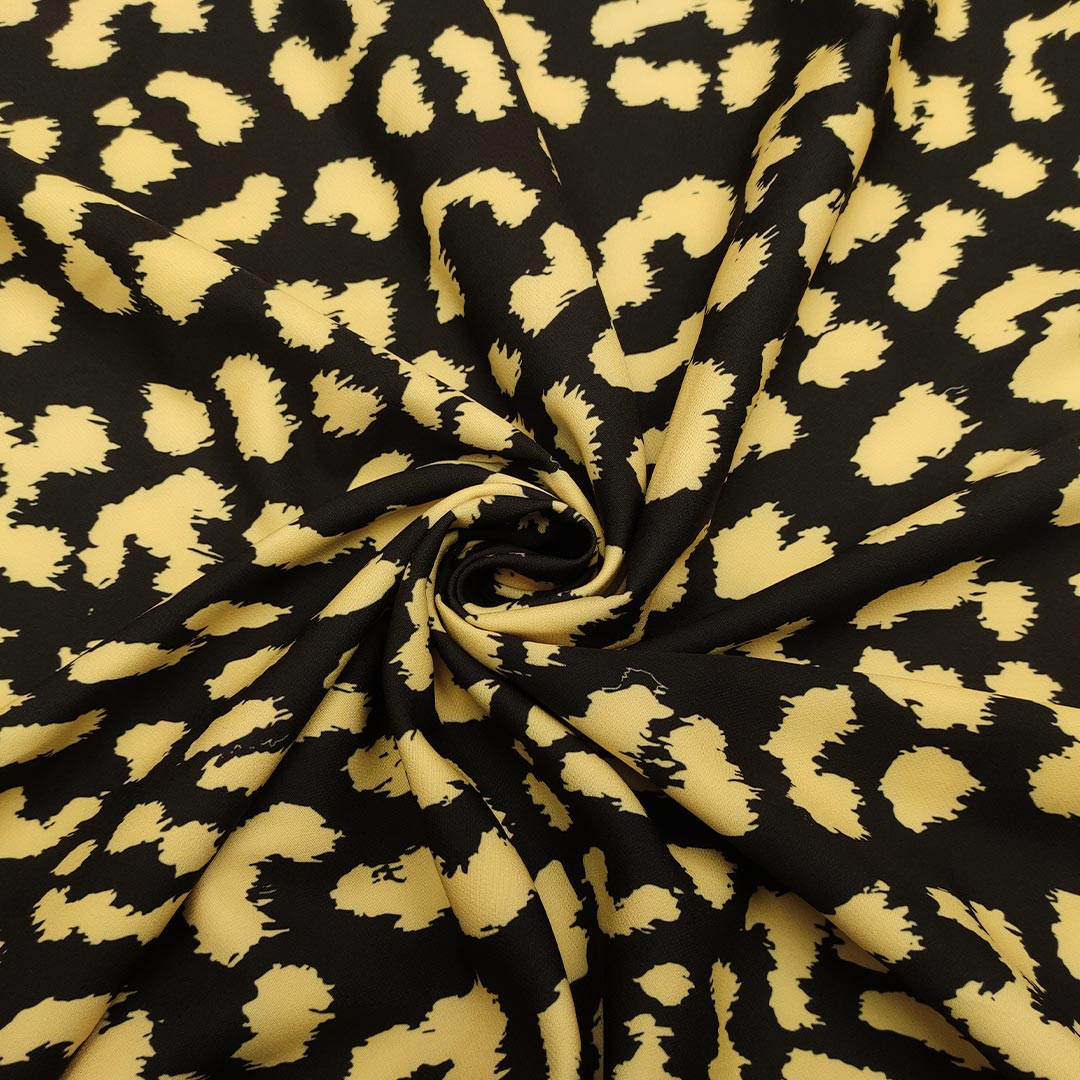 Tessuto Cady elasticizzato a fantasia motivo animalier nero – giallo