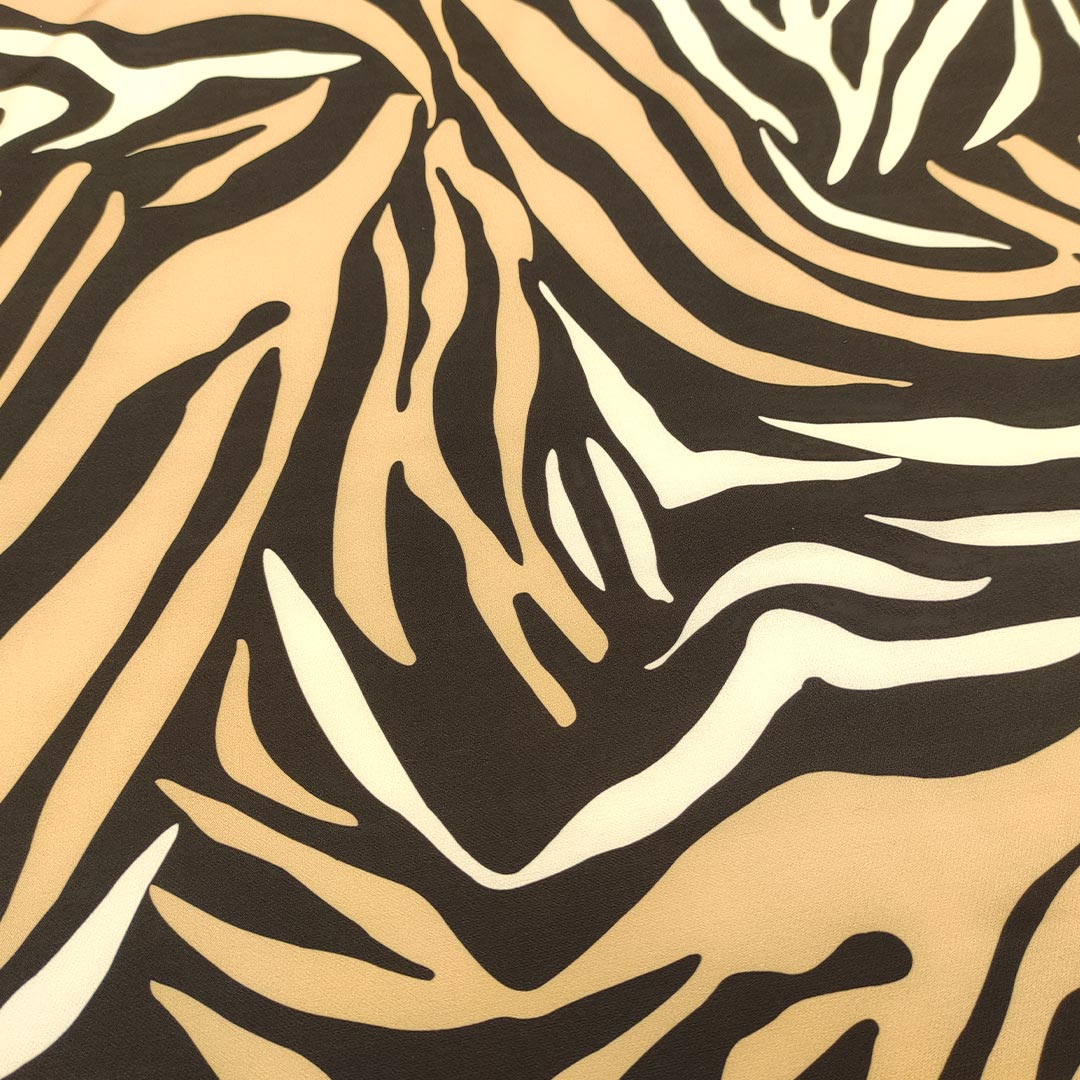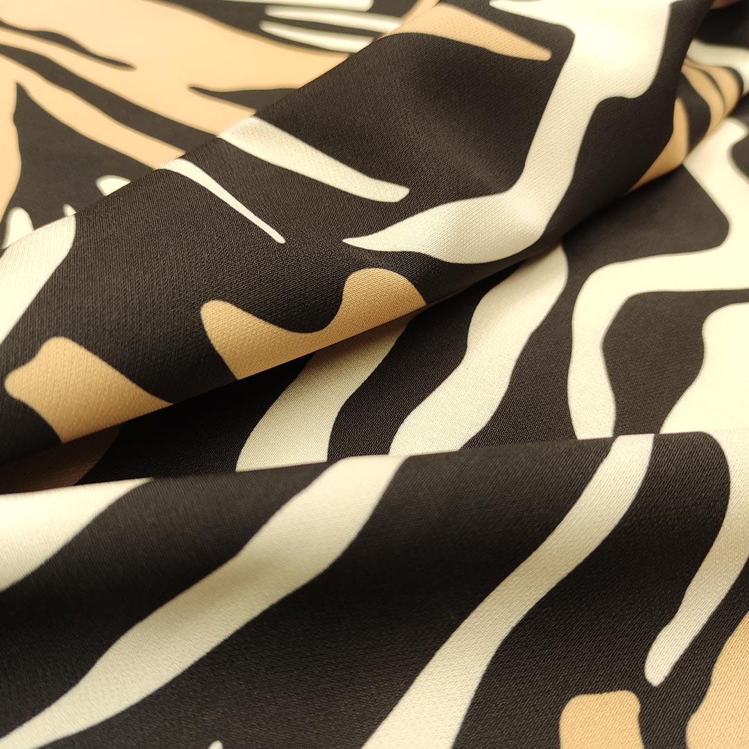 Tessuto Cady elasticizzato a fantasia motivo animalier nero – tabacco – bianco