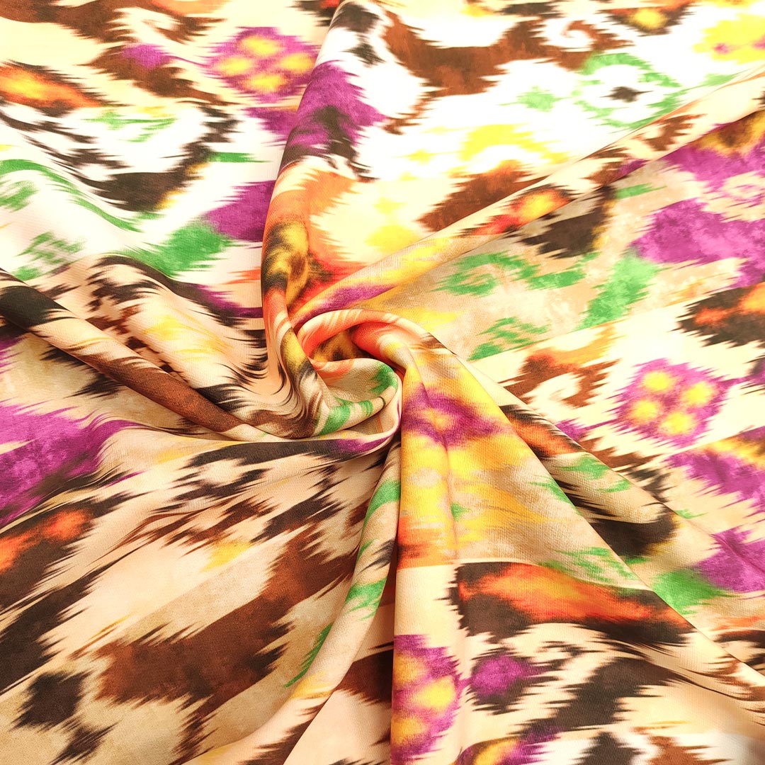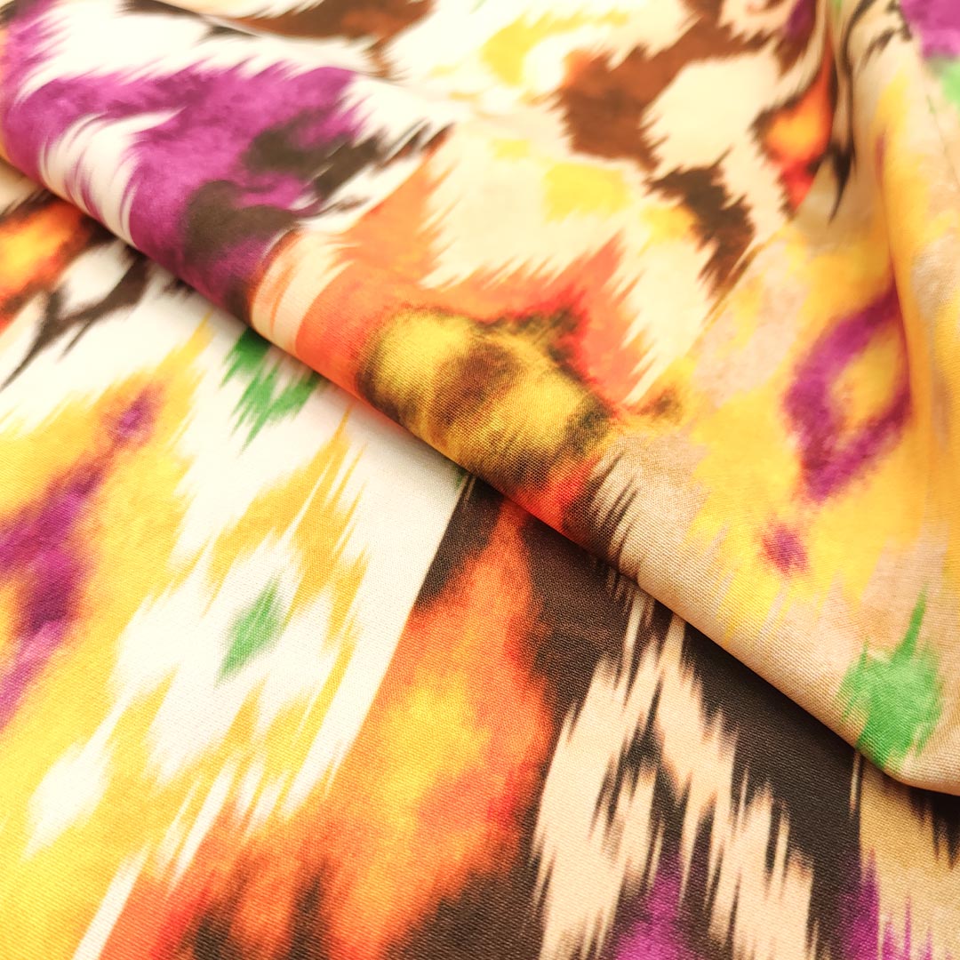 Tessuto Cady elasticizzato a fantasia dalla mano morbida ed elasticizzata ideale per realizzare capi comodi, pratici ed allo stesso tempo eleganti. E’ consigliato per la creazione di: abiti, gonne, pantaloni, giacche, tailleur e jumpsuit.