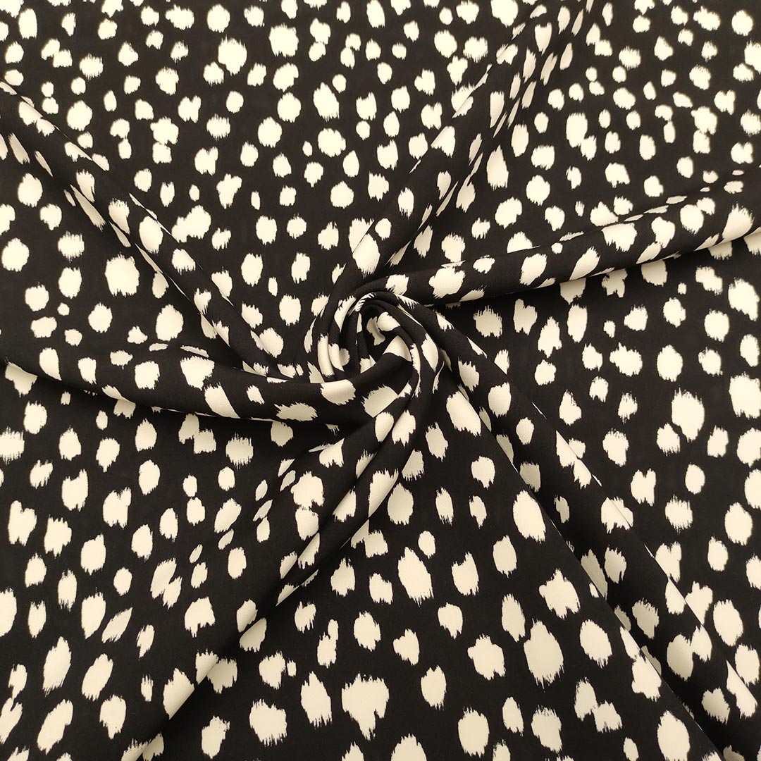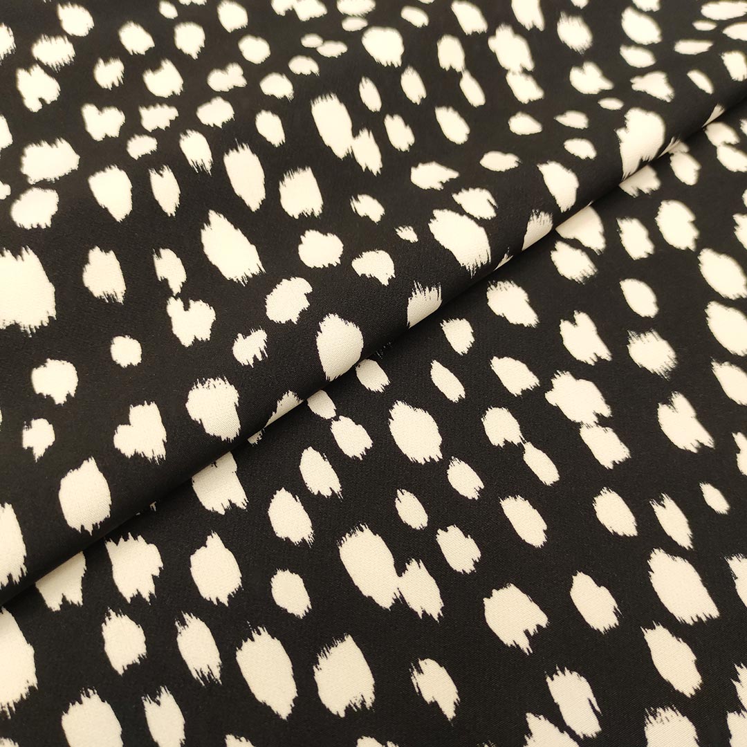 Tessuto Cady elasticizzato a fantasia motivo astratto nero – bianco