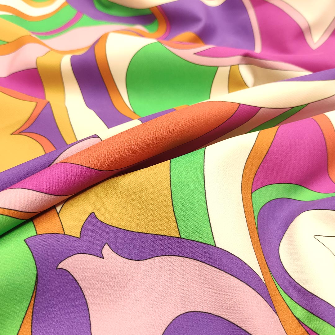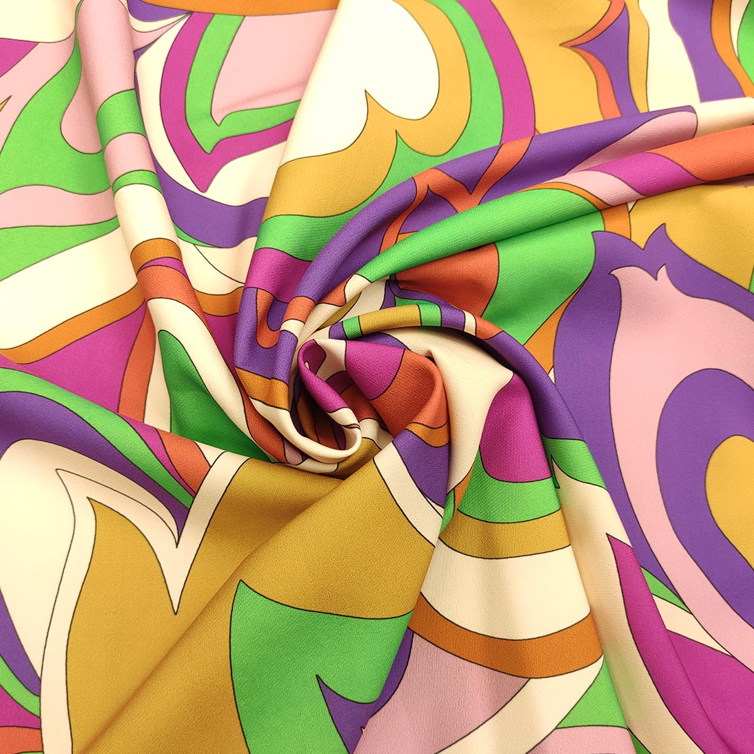 Tessuto Cady elasticizzato a fantasia dalla mano morbida ed elasticizzata ideale per realizzare capi comodi, pratici ed allo stesso tempo eleganti. E’ consigliato per la creazione di: abiti, gonne, pantaloni, giacche, tailleur e jumpsuit.