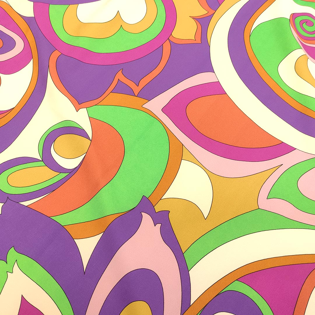 Tessuto Cady elasticizzato a fantasia motivo astratto viola – vinaccio – rosa antico – tabacco – panna