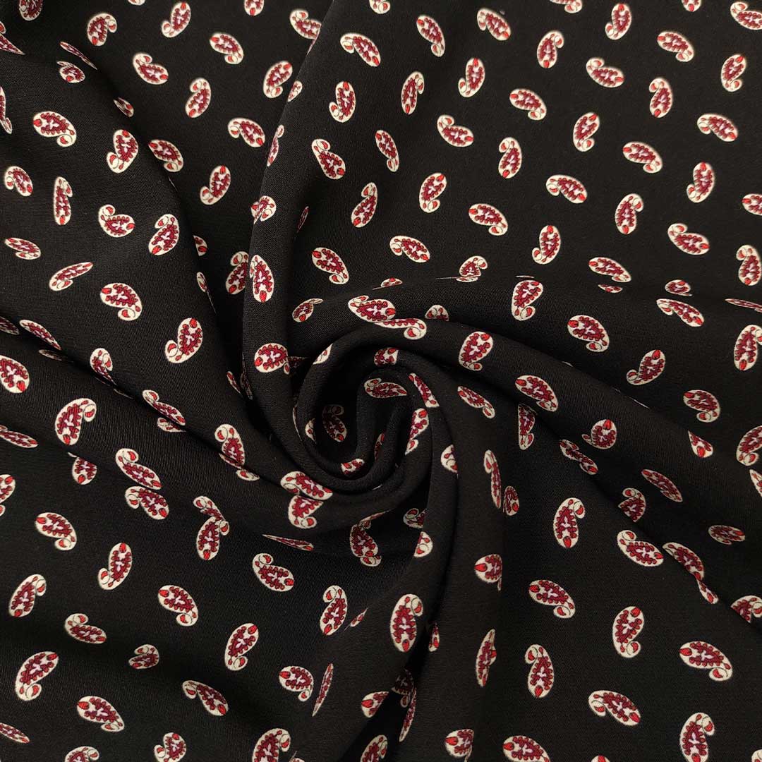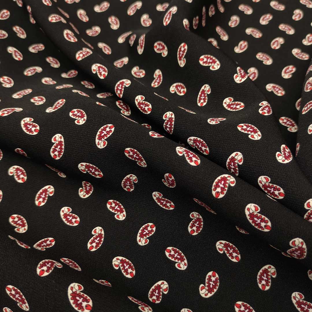 Tessuto Cady elasticizzato a fantasia motivo floreale cashmere nero – bordeaux