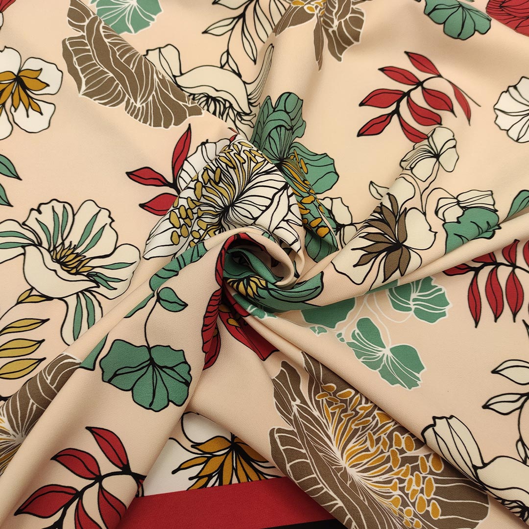Tessuto Cady elasticizzato a fantasia motivo floreale rosa cipria – verde salvia – bordeaux – beige
