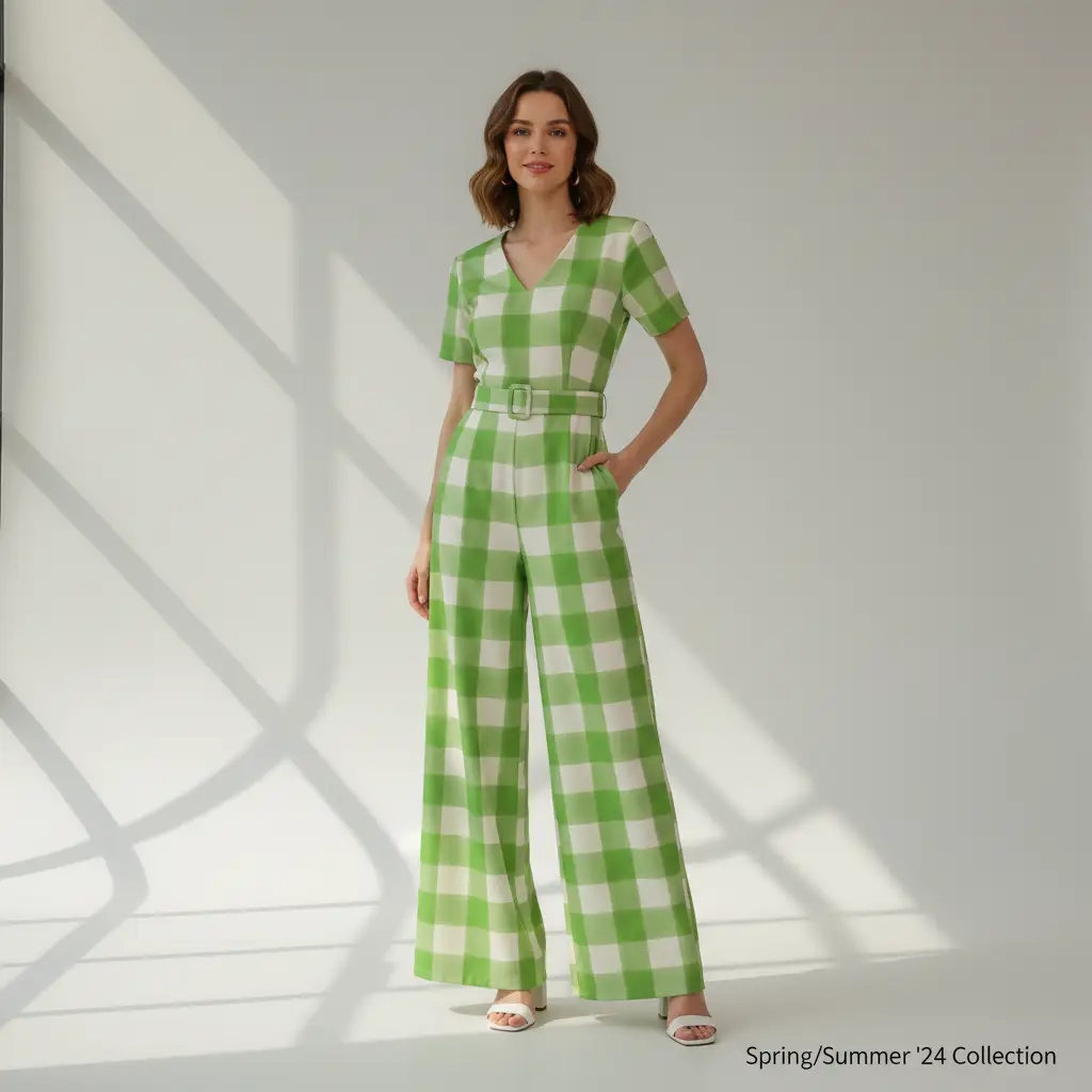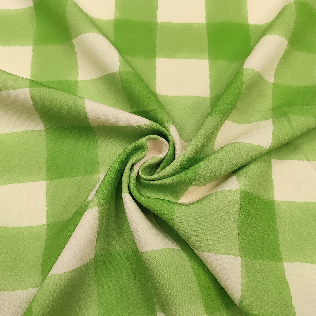 Tessuto Cady elasticizzato a fantasia motivo quadri panna – mela