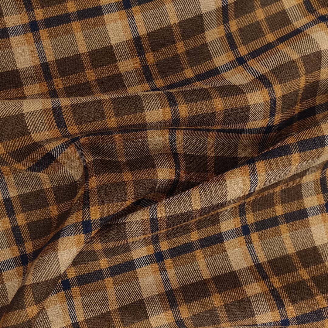 Tessuto Cady mano lana motivo quadri marrone – cammello – blu