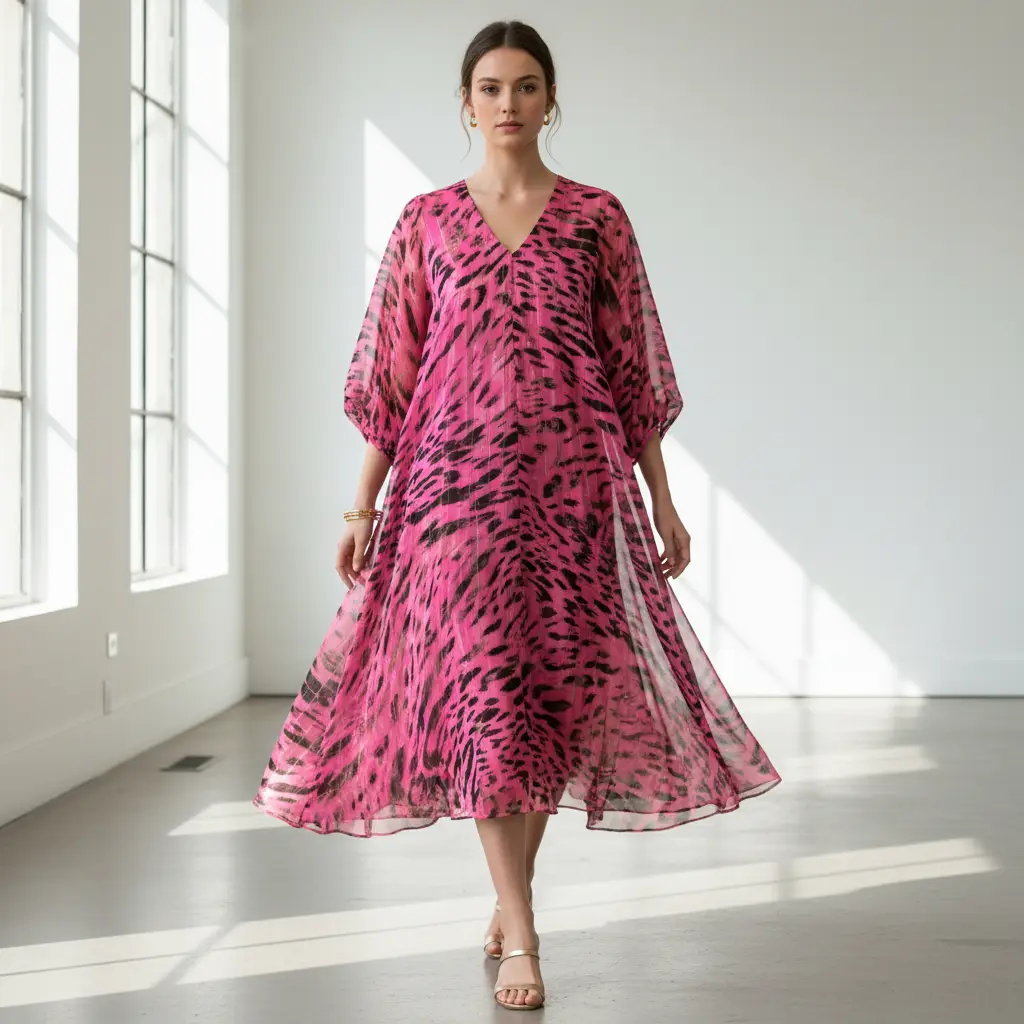 Tessuto Chiffon a fantasia con filo lurex motivo animalier fucsia – nero