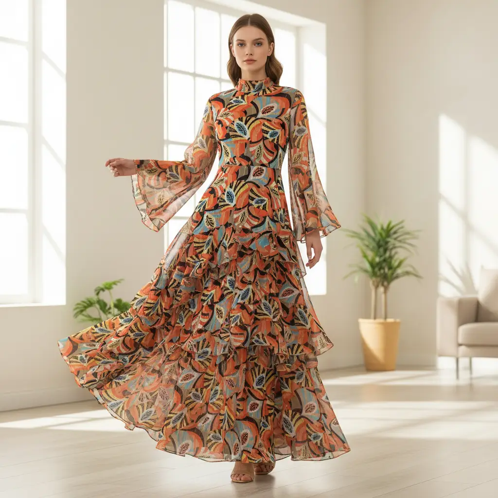 Tessuto Chiffon a fantasia con filo lurex dalla mano morbida trasparente e setosa, ideale per realizzare capi morbidi e trasparenti da cerimonia o da usare tutti i giorni come: camicie, abiti, gonne, stole e spolverini.