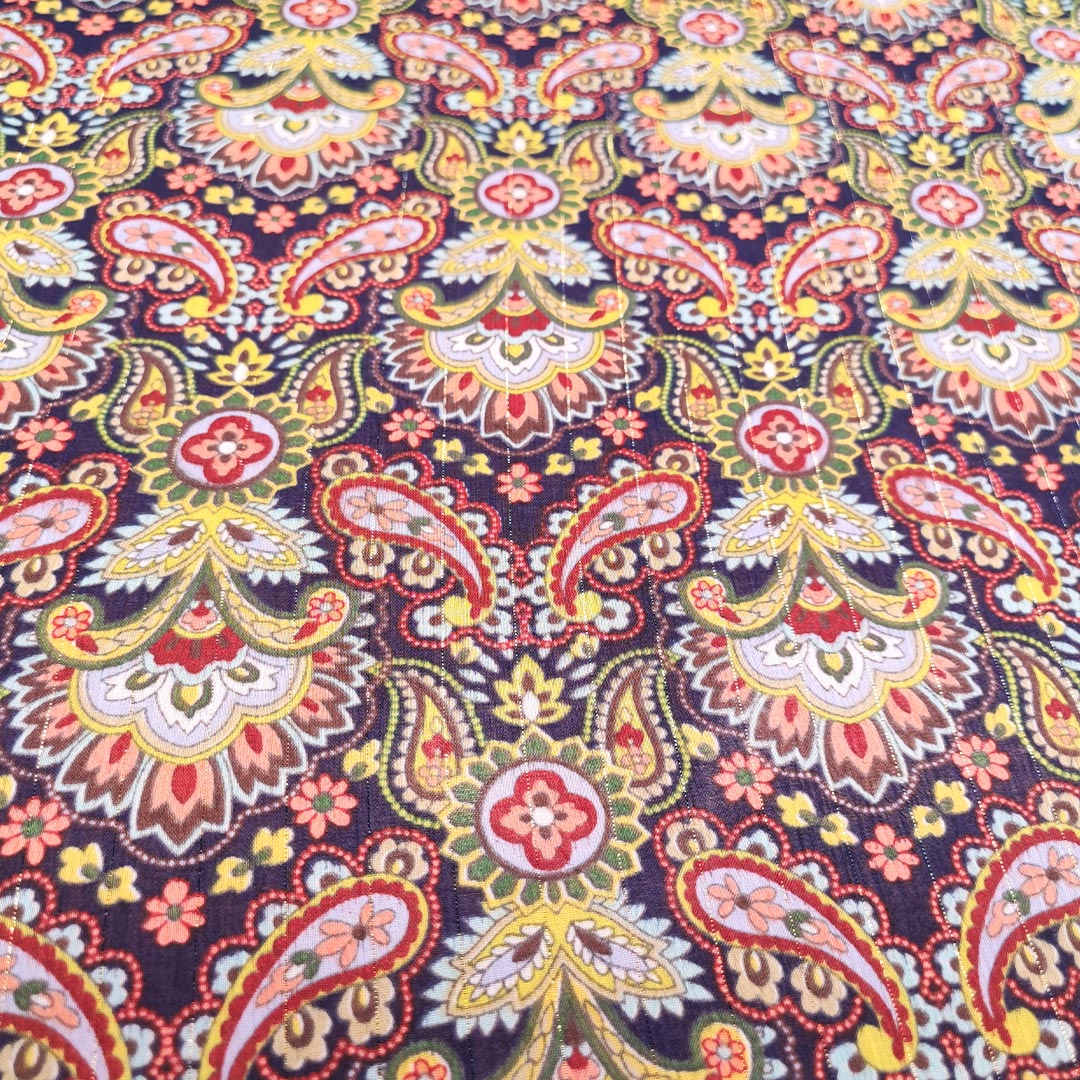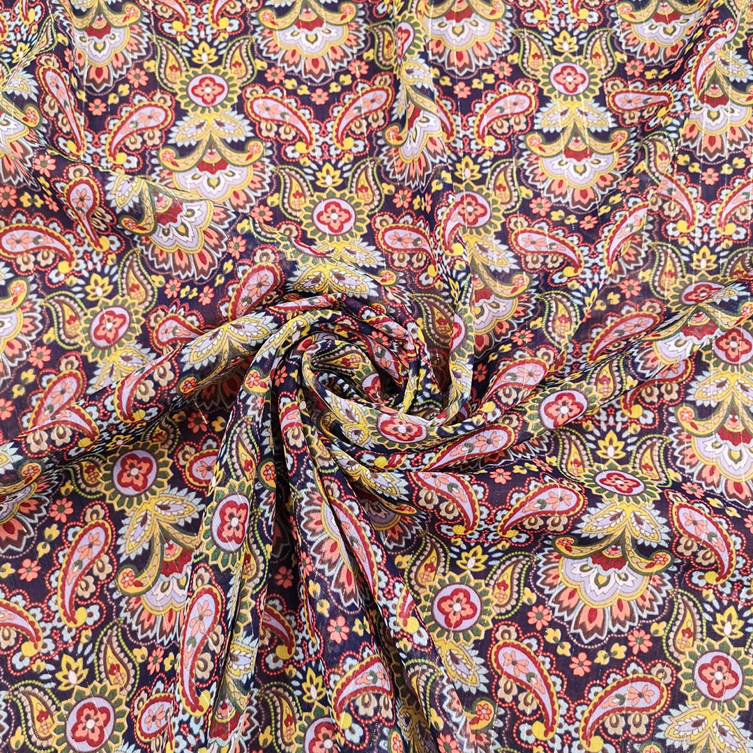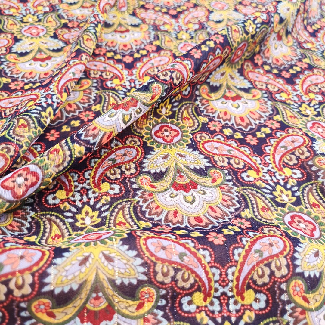 Tessuto Chiffon a fantasia con filo lurex dalla mano morbida trasparente e setosa, ideale per realizzare capi morbidi e trasparenti da cerimonia o da usare tutti i giorni come: camicie, abiti, gonne, stole e spolverini.