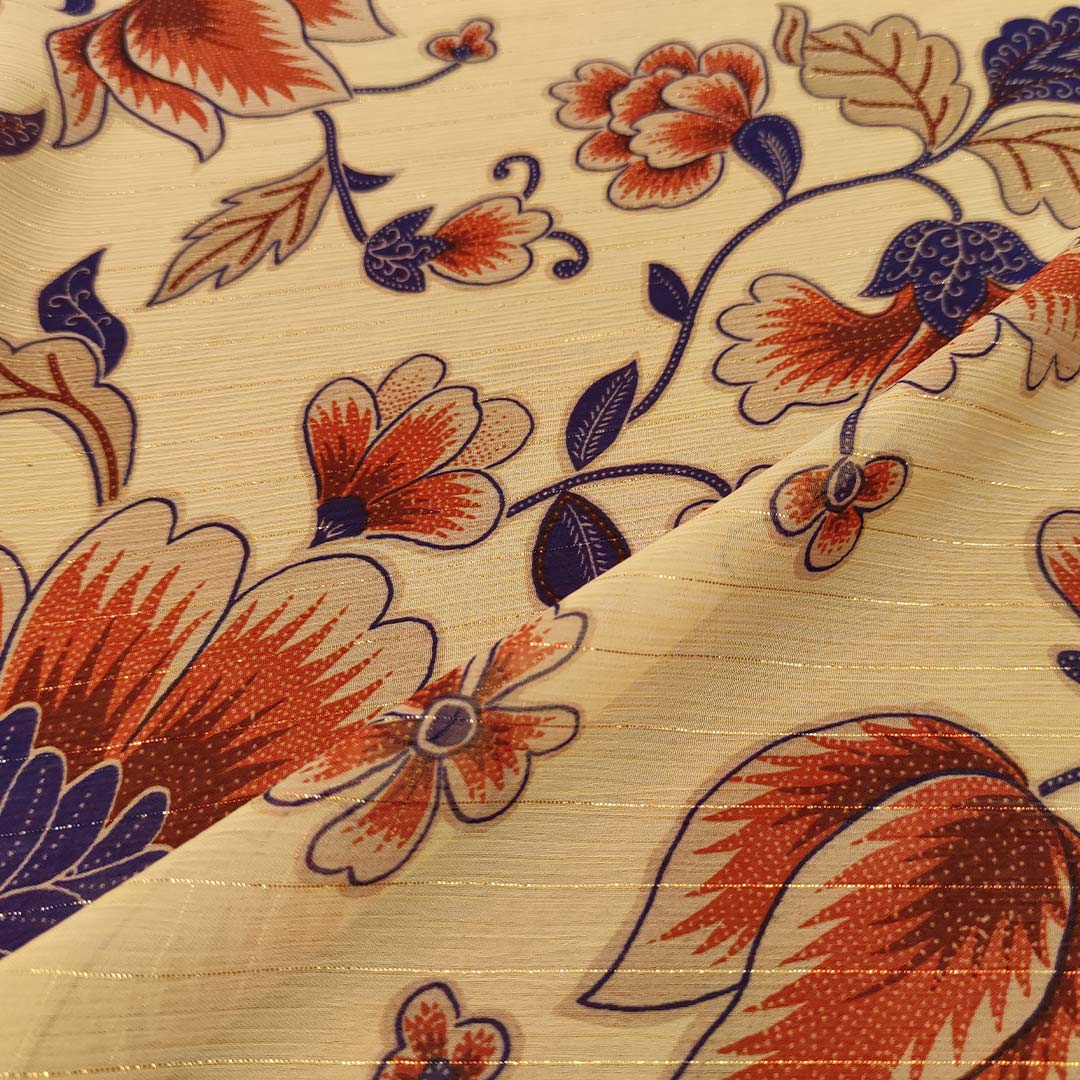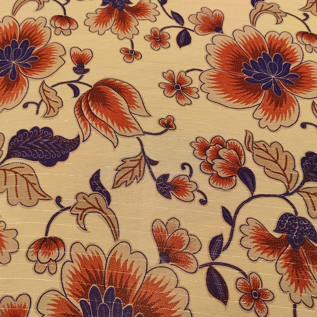 Tessuto Chiffon a fantasia con filo lurex motivo floreale beige – ruggine – viola