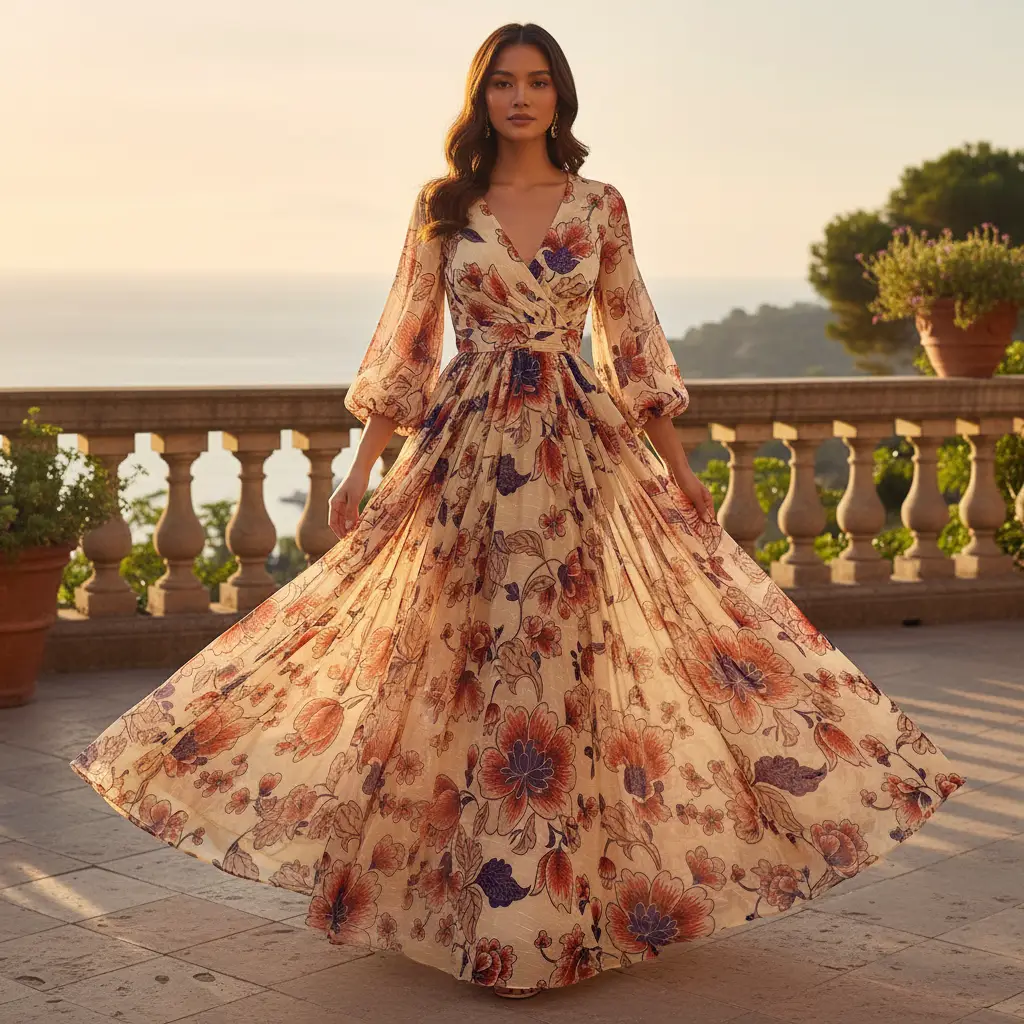 Tessuto Chiffon a fantasia con filo lurex dalla mano morbida trasparente e setosa, ideale per realizzare capi morbidi e trasparenti da cerimonia o da usare tutti i giorni come: camicie, abiti, gonne, stole e spolverini.