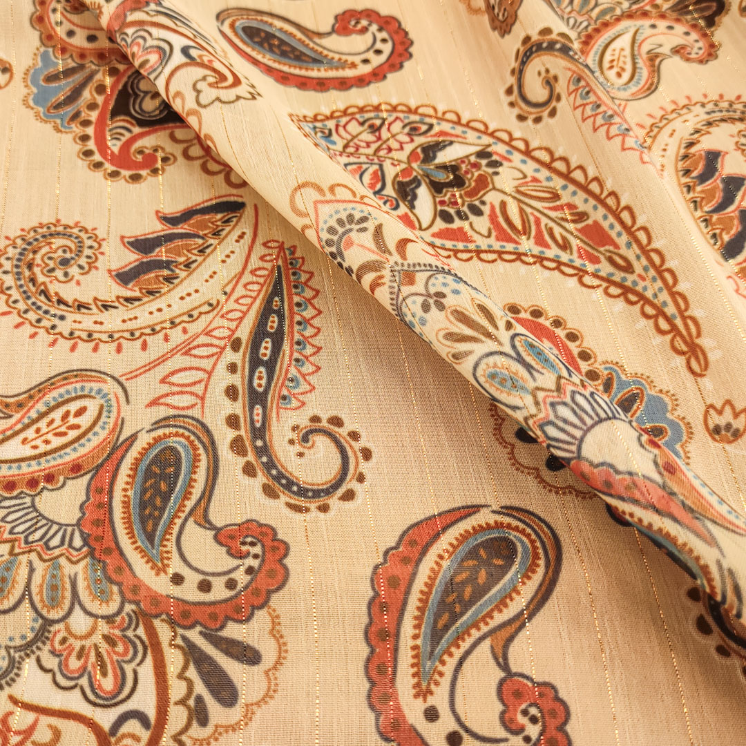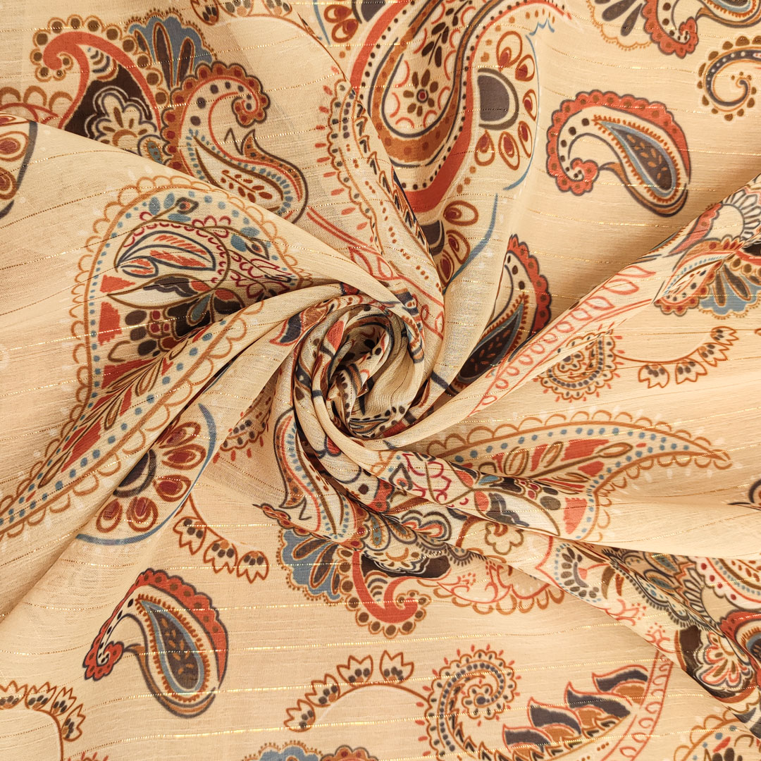 Tessuto Chiffon a fantasia con filo lurex motivo floreale cashmere beige – ruggine – blu