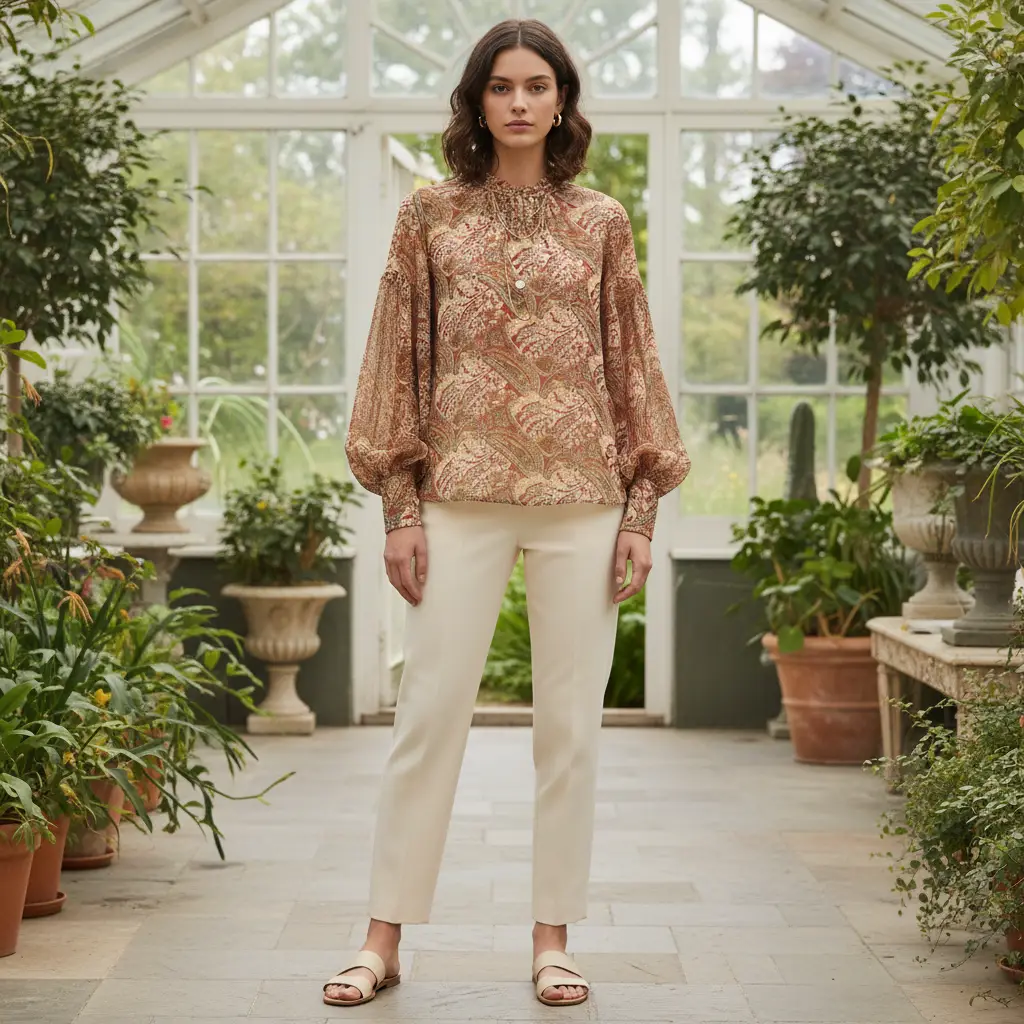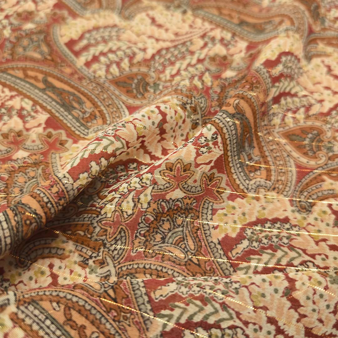 Tessuto Chiffon a fantasia con filo lurex motivo floreale cashmere coccio – panna – rosso