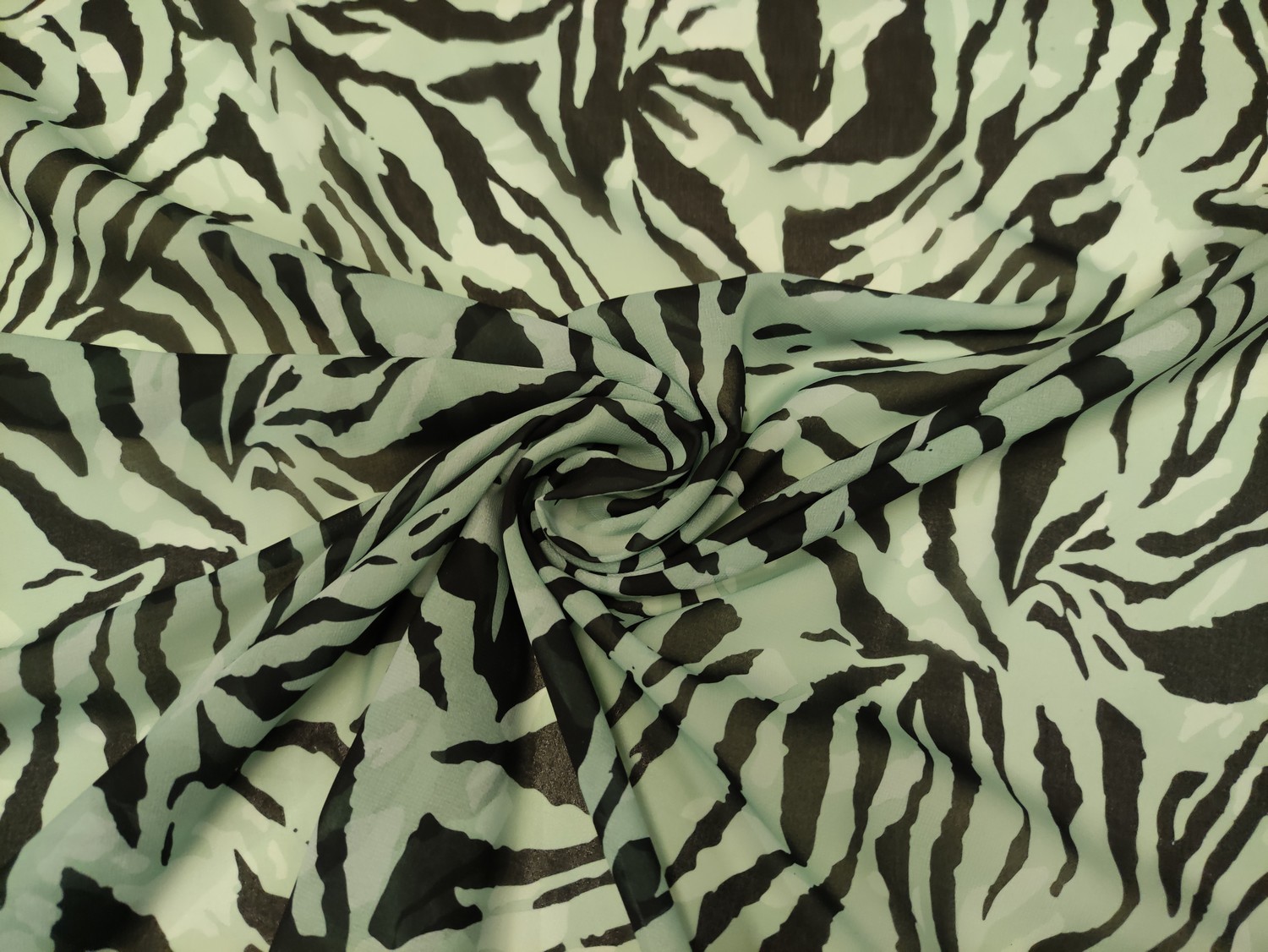 Tessuto Chiffon a fantasia dalla mano morbida trasparente e setosa, ideale per realizzare capi morbidi e trasparenti da cerimonia o da usare tutti i giorni come: camicie, abiti, gonne, stole e spolverini. Selezione Iaia Collection