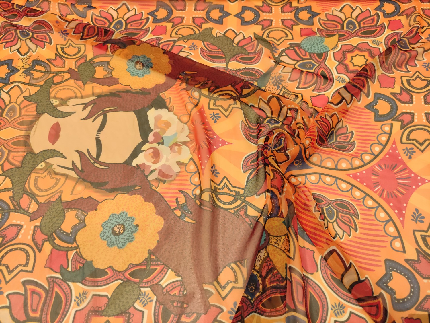 Tessuto Chiffon a fantasia motivo astratto arancione – rosso