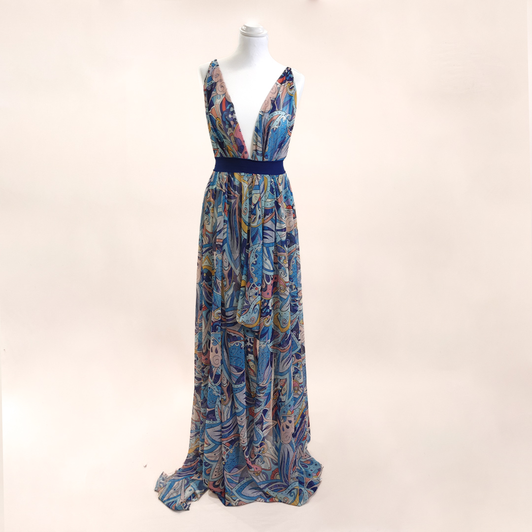 Tessuto Chiffon a fantasia dalla mano morbida trasparente e setosa, ideale per realizzare capi morbidi e trasparenti da cerimonia o da usare tutti i giorni come: camicie, abiti, gonne, stole e spolverini. Selezione Iaia Collection