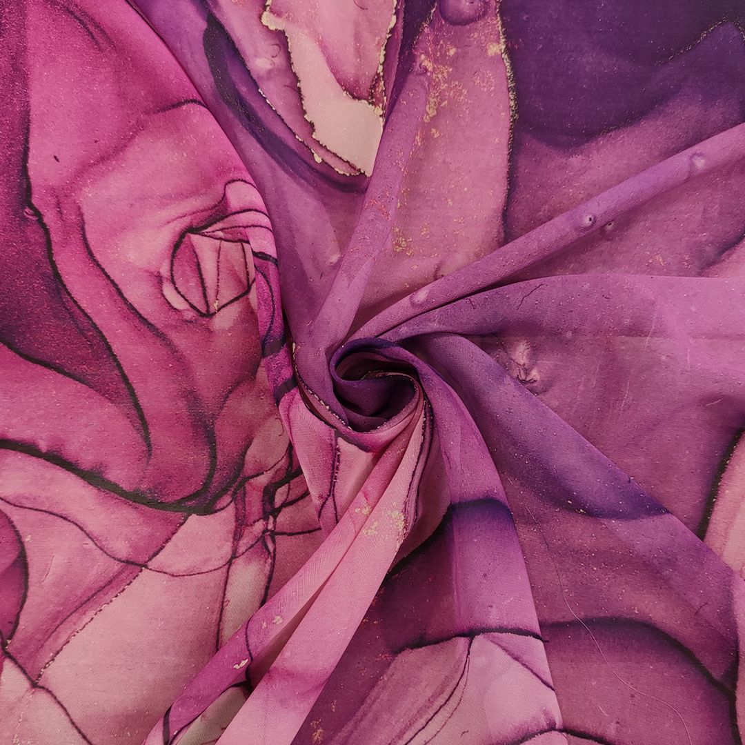 Tessuto Chiffon a fantasia motivo astratto fucsia – viola