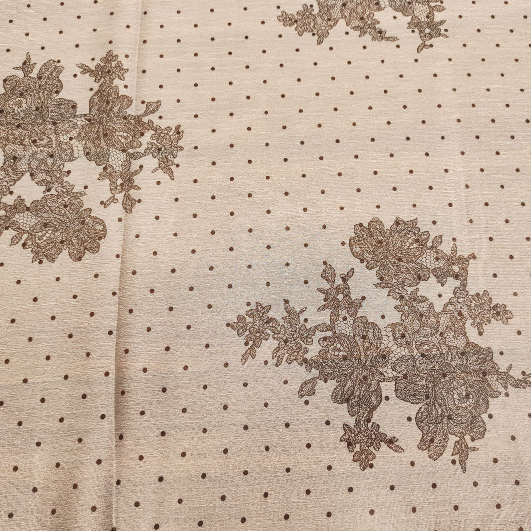 Tessuto Chiffon a fantasia dalla mano morbida trasparente e setosa, ideale per realizzare capi morbidi e trasparenti da cerimonia o da usare tutti i giorni come: camicie, abiti, gonne, stole e spolverini.
