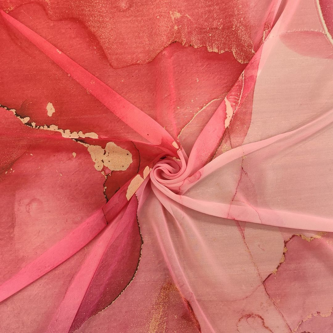 Tessuto Chiffon a fantasia motivo astratto rosa – celeste
