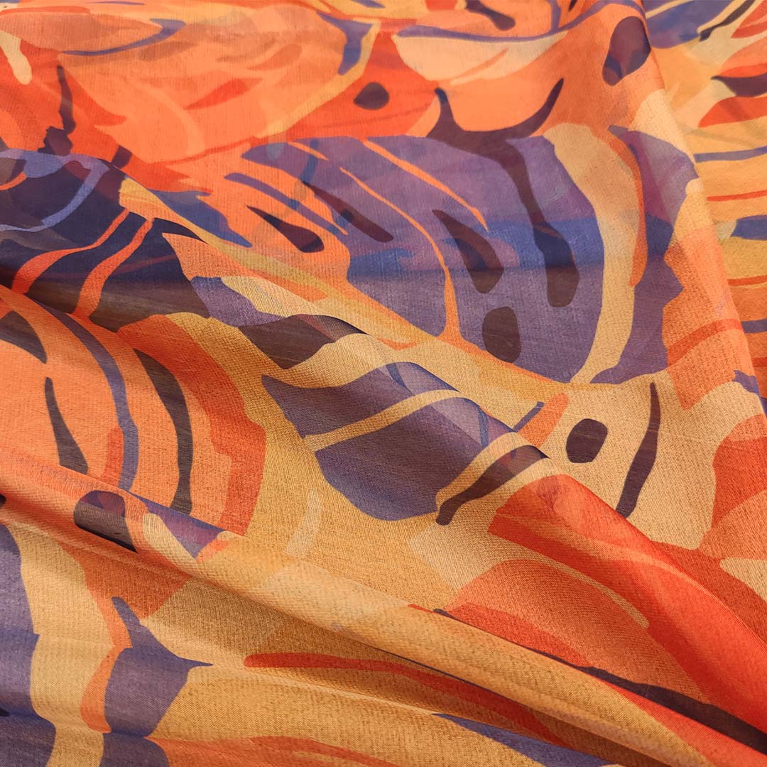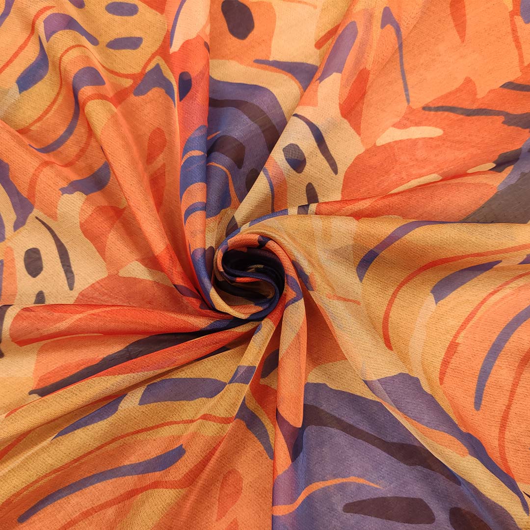 Tessuto Chiffon a fantasia motivo astratto viola – arancione