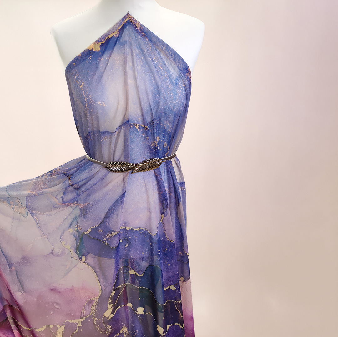 Tessuto Chiffon a fantasia motivo astratto viola – fucsia