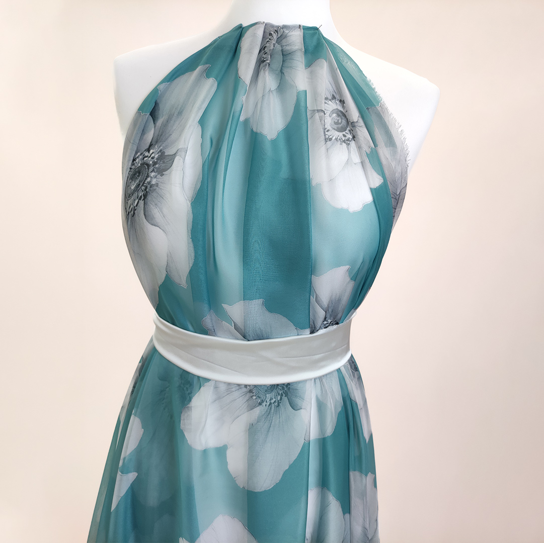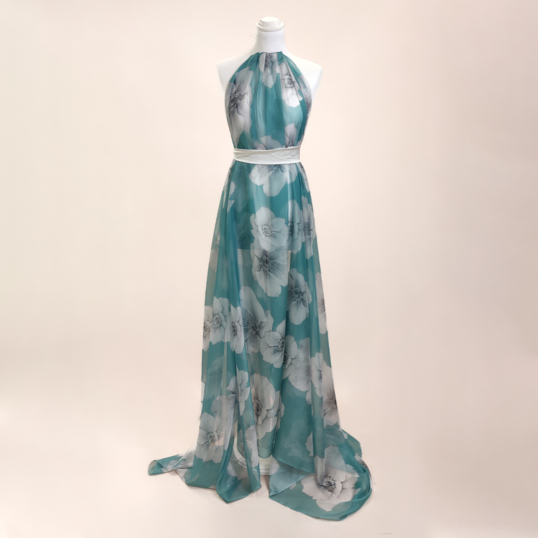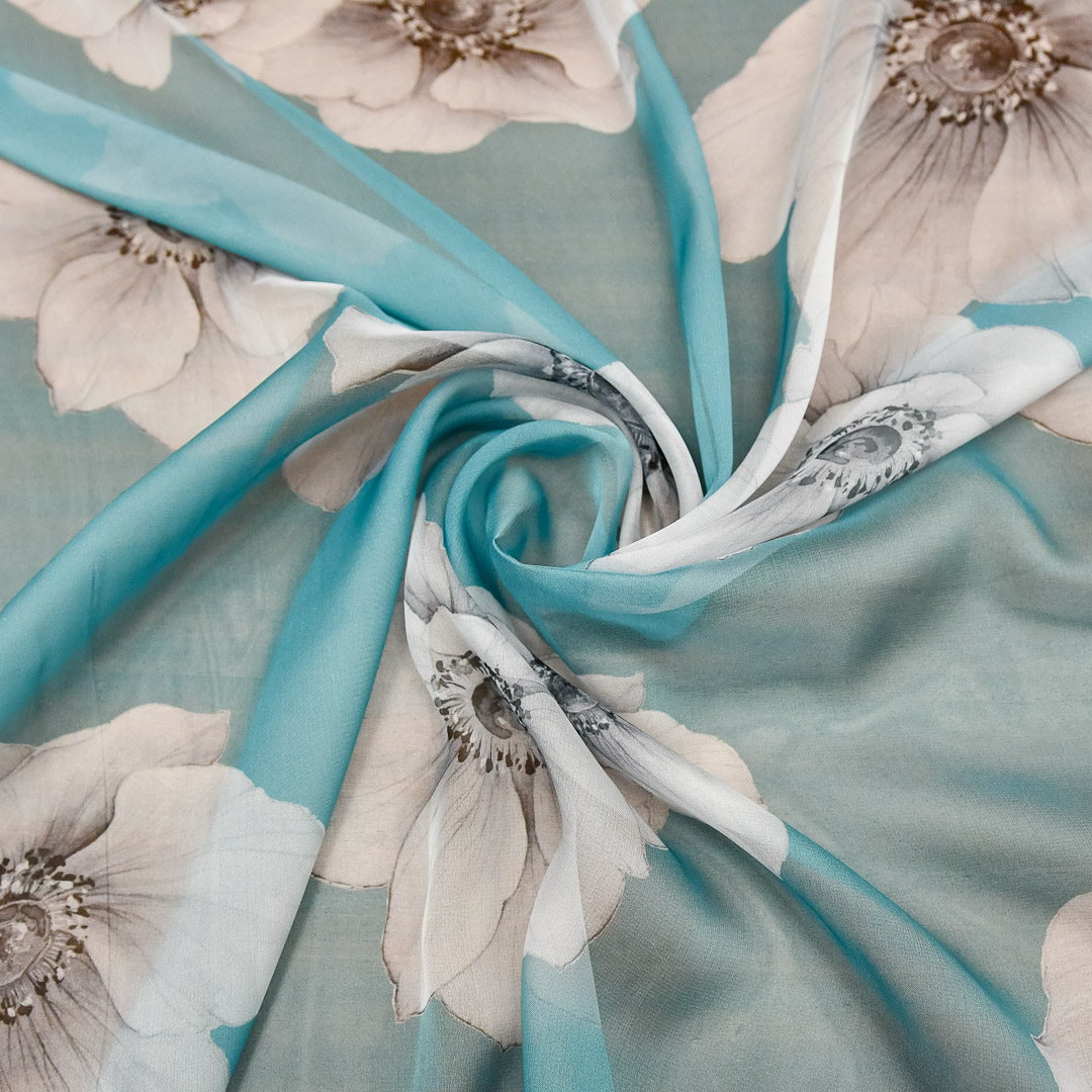 Tessuto Chiffon a fantasia dalla mano morbida trasparente e setosa, ideale per realizzare capi morbidi e trasparenti da cerimonia o da usare tutti i giorni come: camicie, abiti, gonne, stole e spolverini. Selezione Iaia Collection