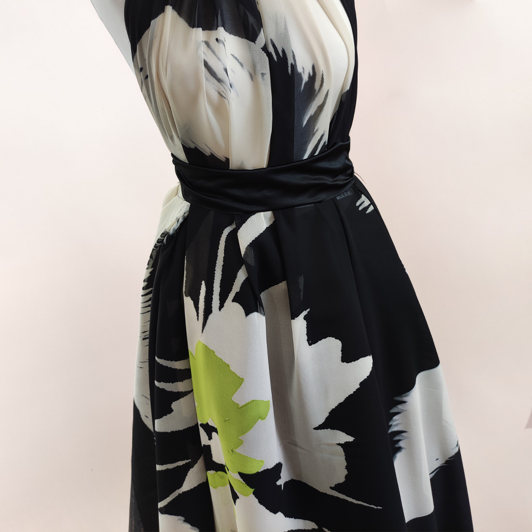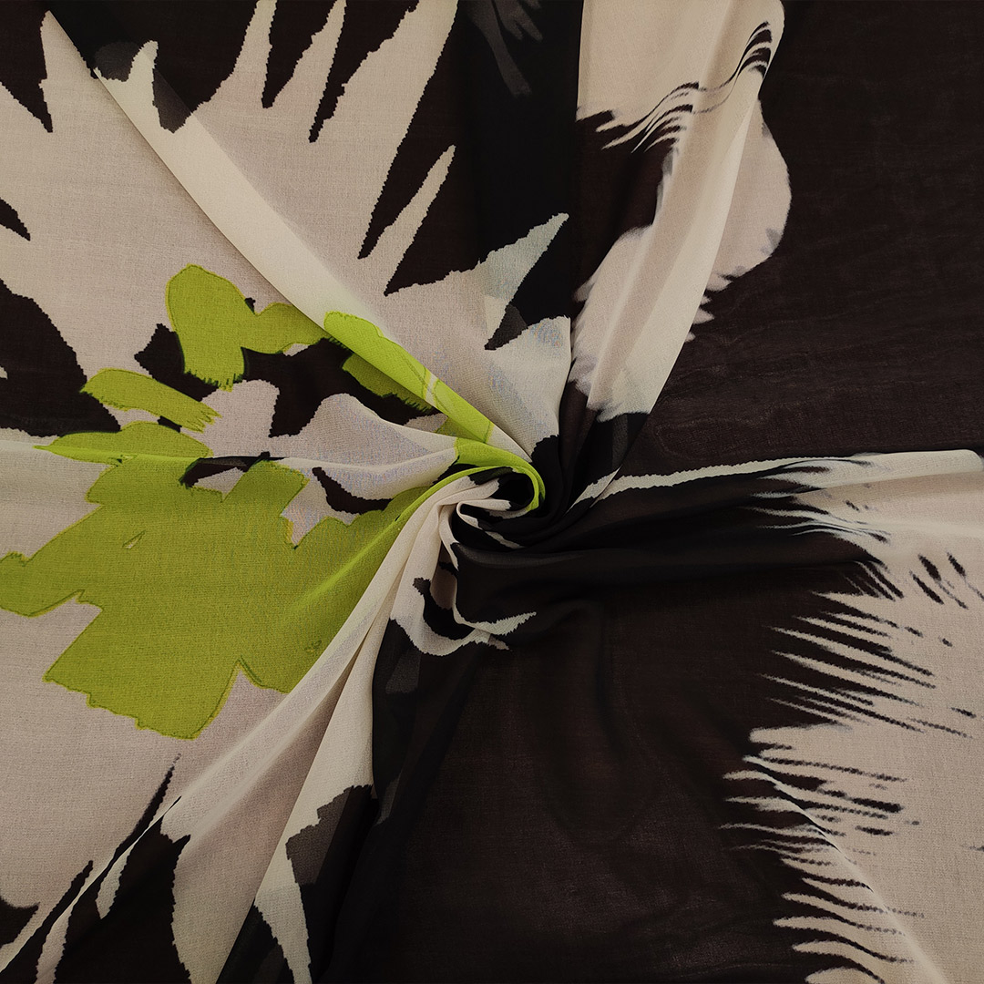 Tessuto Chiffon a fantasia motivo floreale nero – lime – bianco