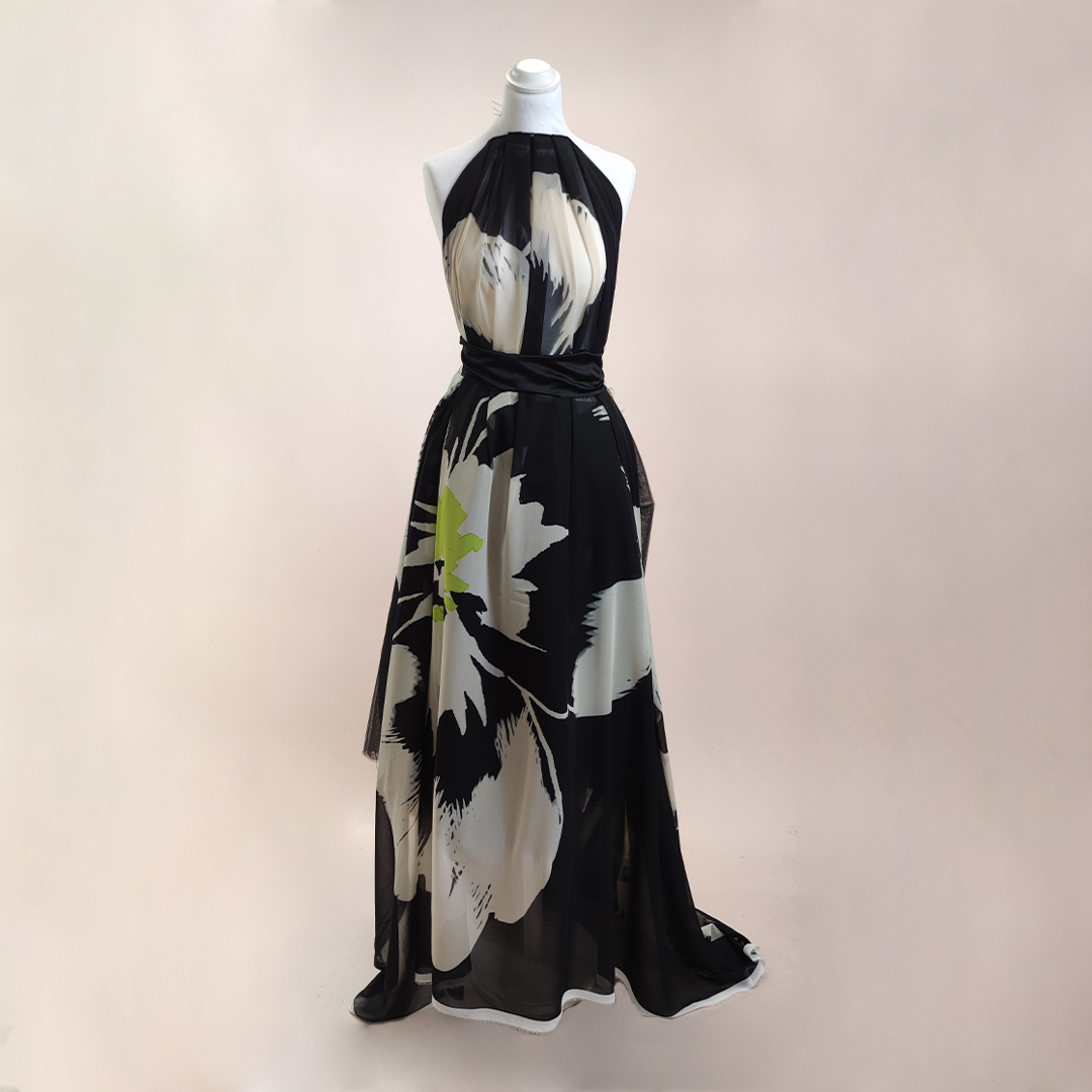 Tessuto Chiffon a fantasia dalla mano morbida trasparente e setosa, ideale per realizzare capi morbidi e trasparenti da cerimonia o da usare tutti i giorni come: camicie, abiti, gonne, stole e spolverini.