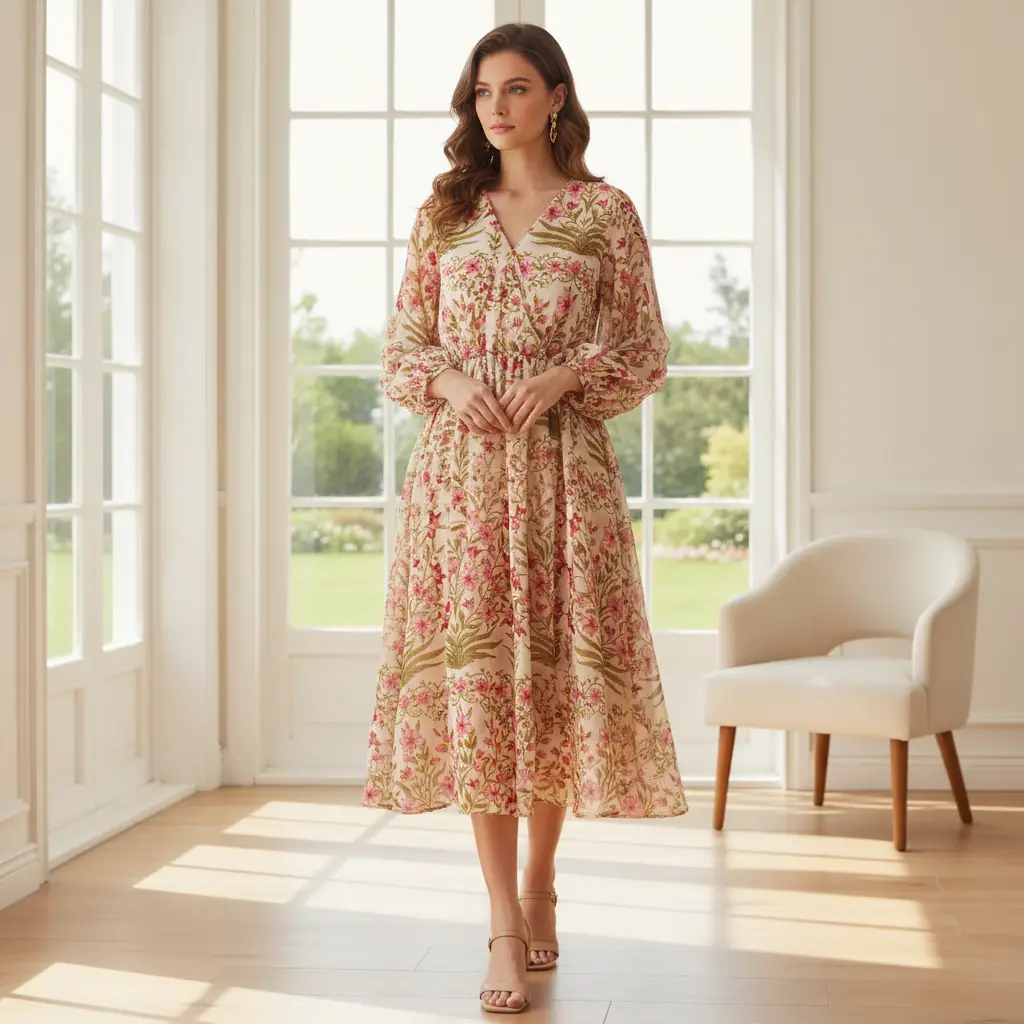 Tessuto Chiffon a fantasia dalla mano morbida trasparente e setosa, ideale per realizzare capi morbidi e trasparenti da cerimonia o da usare tutti i giorni come: camicie, abiti, gonne, stole e spolverini.