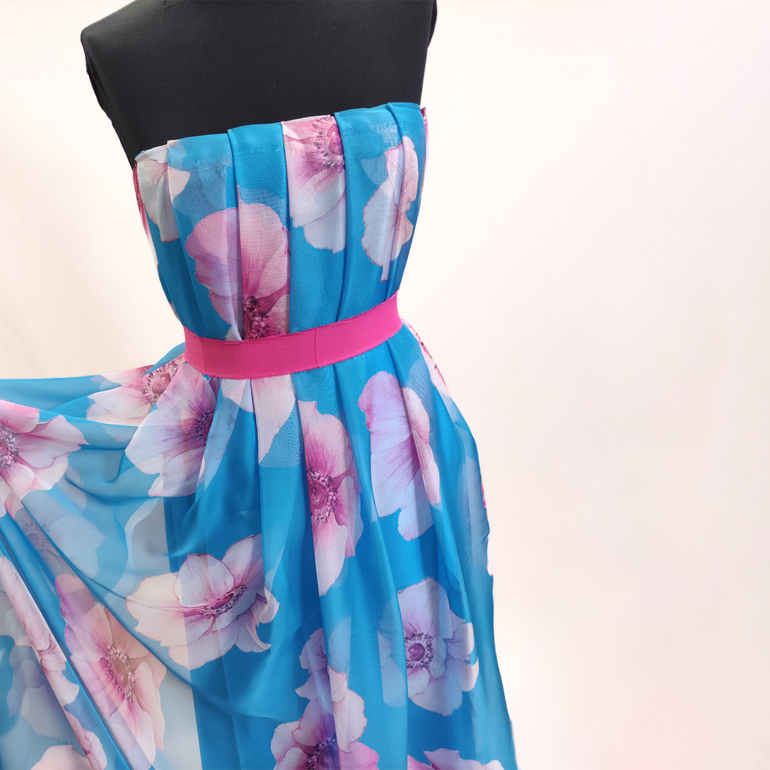 Tessuto Chiffon a fantasia dalla mano morbida trasparente e setosa, ideale per realizzare capi morbidi e trasparenti da cerimonia o da usare tutti i giorni come: camicie, abiti, gonne, stole e spolverini. Selezione Iaia Collection