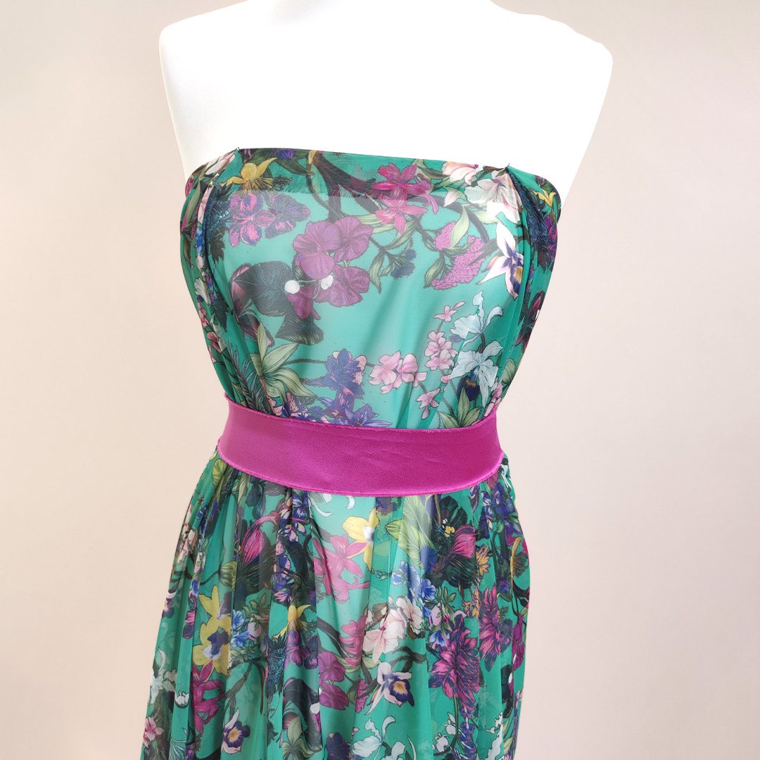 Tessuto Chiffon a fantasia motivo floreale verde – fucsia