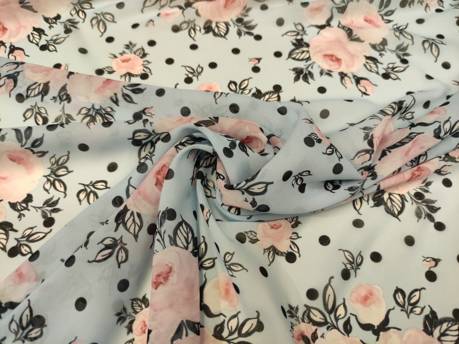 Tessuto Chiffon a fantasia motivo pois celeste – rosa