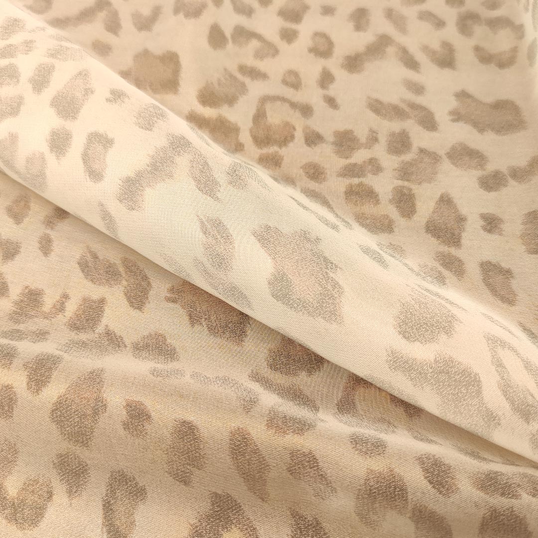 Tessuto Chiffon spalmato a fantasia motivo animalier bianco – marrone