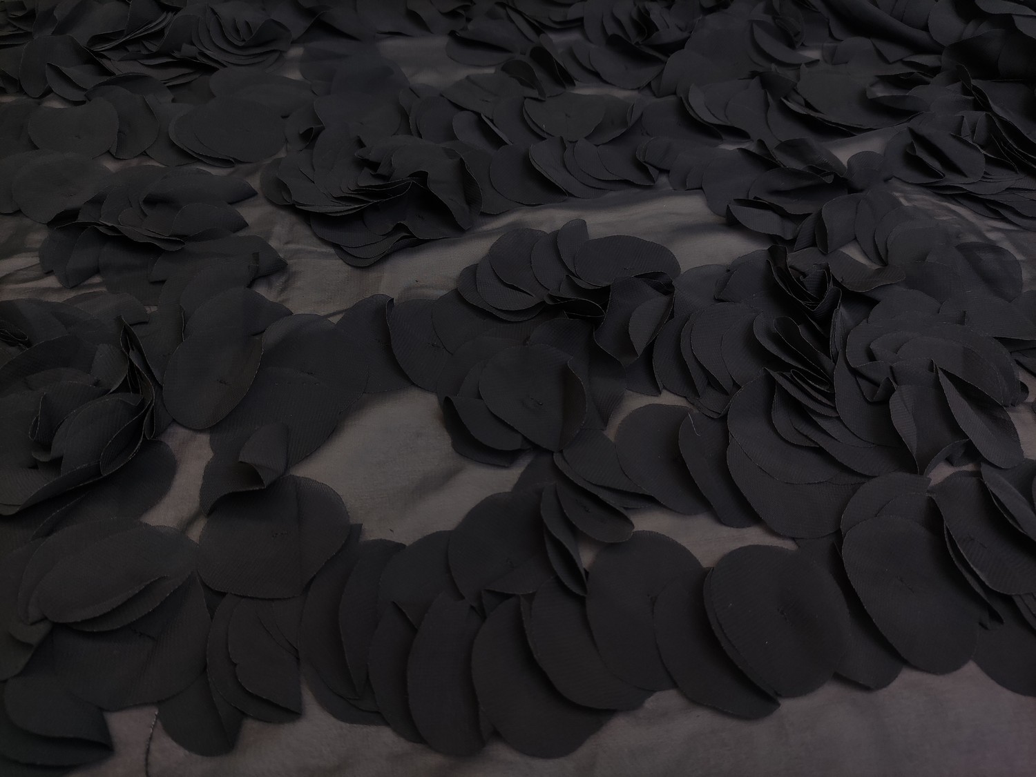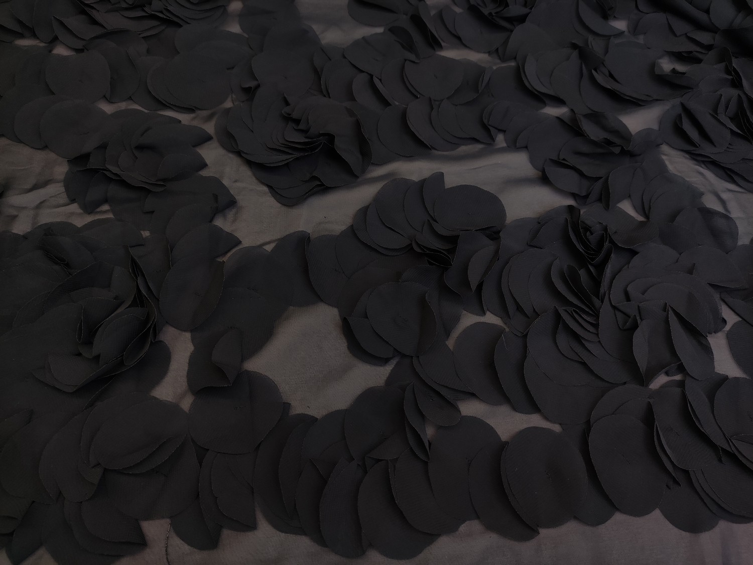 Tessuto chiffon ricamato con fiori in 3D nero