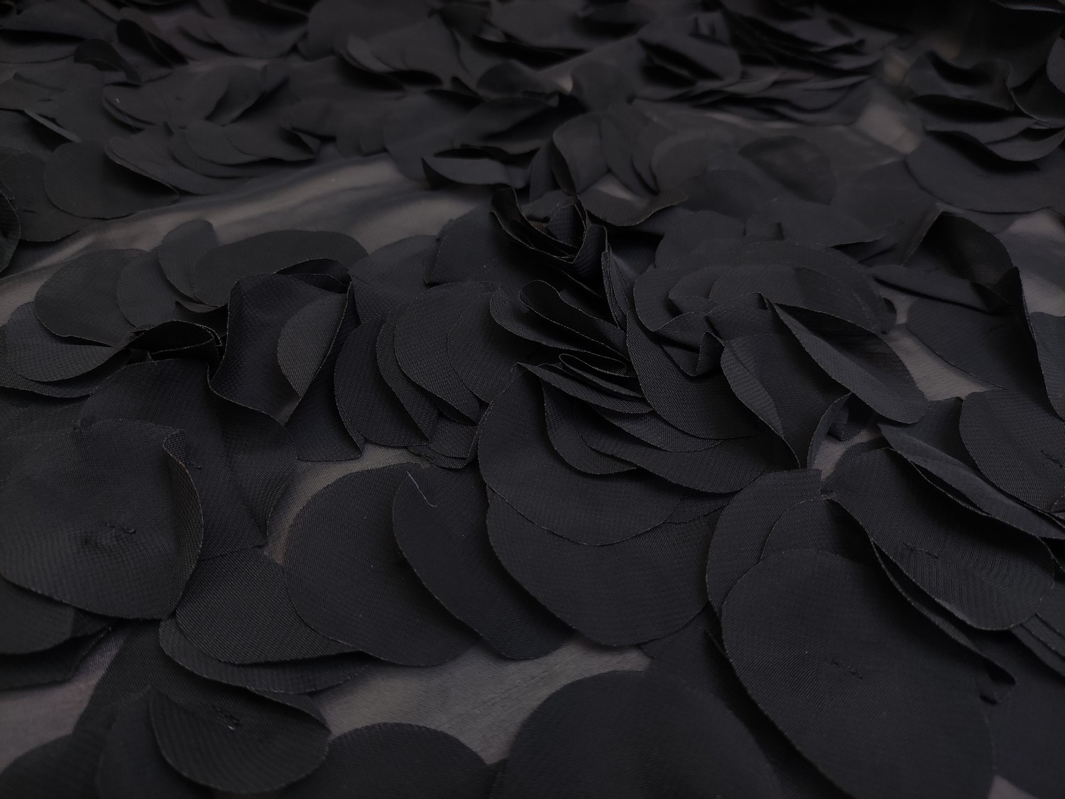 Tessuto Chiffon ricamato con fiori in 3D dalla mano morbida, voluminosa e fluente, ideale per creare capi sartoriali da cerimonia e per le grandi occasioni originali e alla moda.